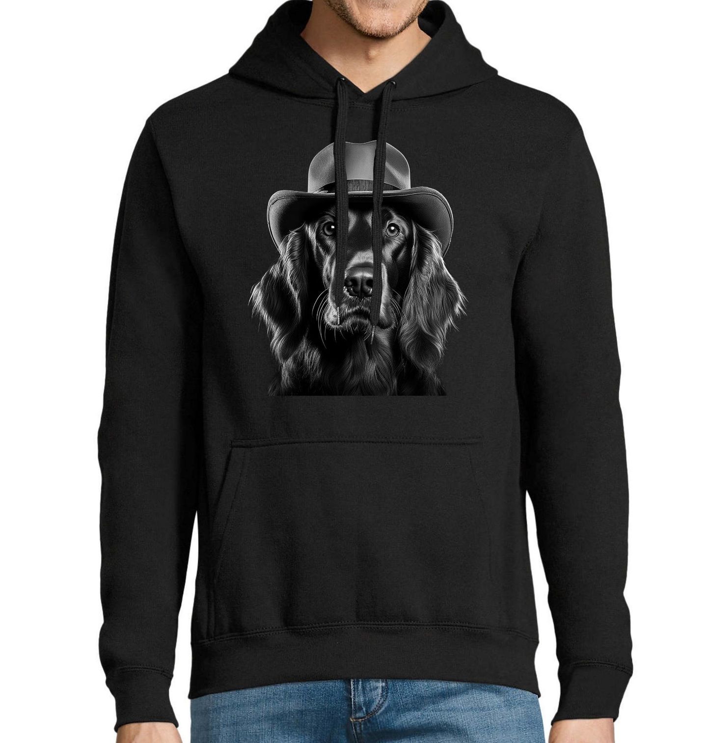 Pánská mikina Irský setr s Kloboukem. Irský setr je energický a elegantní pes, který vyniká svou ladností, inteligencí a přátelskou povahou. Tento originální motiv zachycuje Irský setr v klobouku jako stylového společníka s výrazným charismatem. Každý pejskař, který miluje toto ušlechtilé plemeno, ocení detailní zpracování a důraz na typický vzhled, jaký Irský setr představuje.