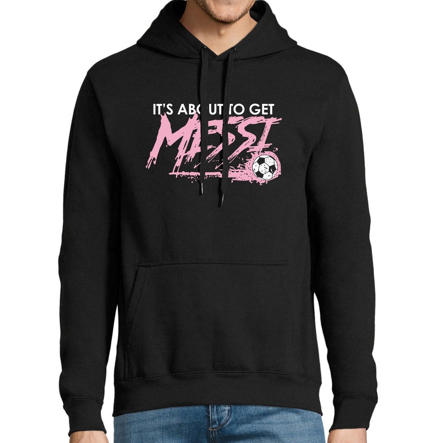 Pánská mikina It's About To Get Messi. „It’s about to get Messi“ je vtipná hra se slovy: v angličtině „messy“ znamená nepořádek, ale když to čteš, slyšíš jméno nejslavnějšího fotbalisty světa Lionela Messiho. Perfektní pro každého fanouška fotbalu, míče a trošky stylového meme humoru. Hodí se na stadion i gauč při sledování zápasu.