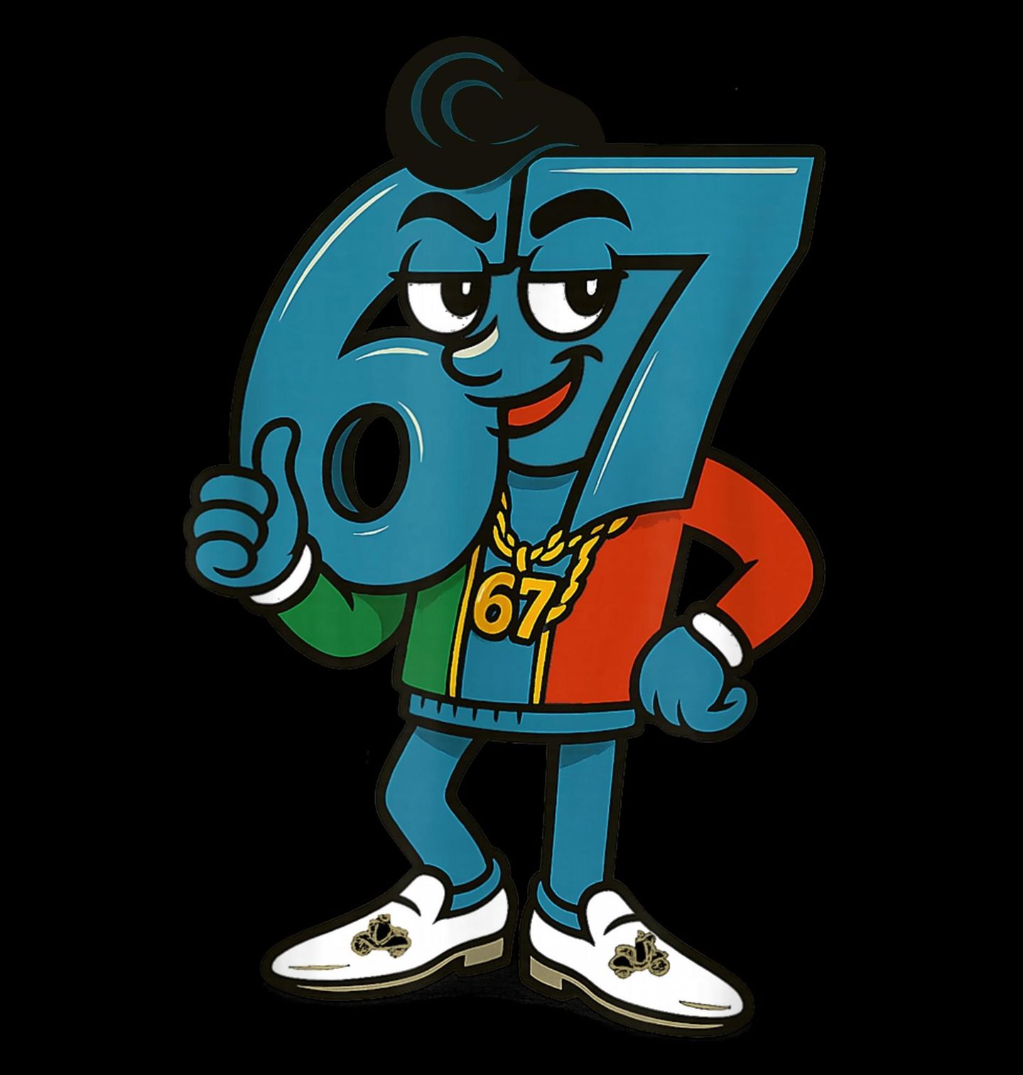 Pánské tričko Italská Legenda 67 Six Seven. Motiv 67 ve stylu six seven meme dostává tentokrát pořádný „italský vibe“. Samotné číslo 67 je tu zobrazené jako stylový frajer s klidným úsměvem, zlatým řetězem a bundou v barvách italské vlajky. Celý design působí jako vtipná parodie na „mafiánsky-cool italského frajera“, ale v roztomilém a odlehčeném meme stylu - ideální pro všechny, kdo milují číslo 67, humor a originální motivy.