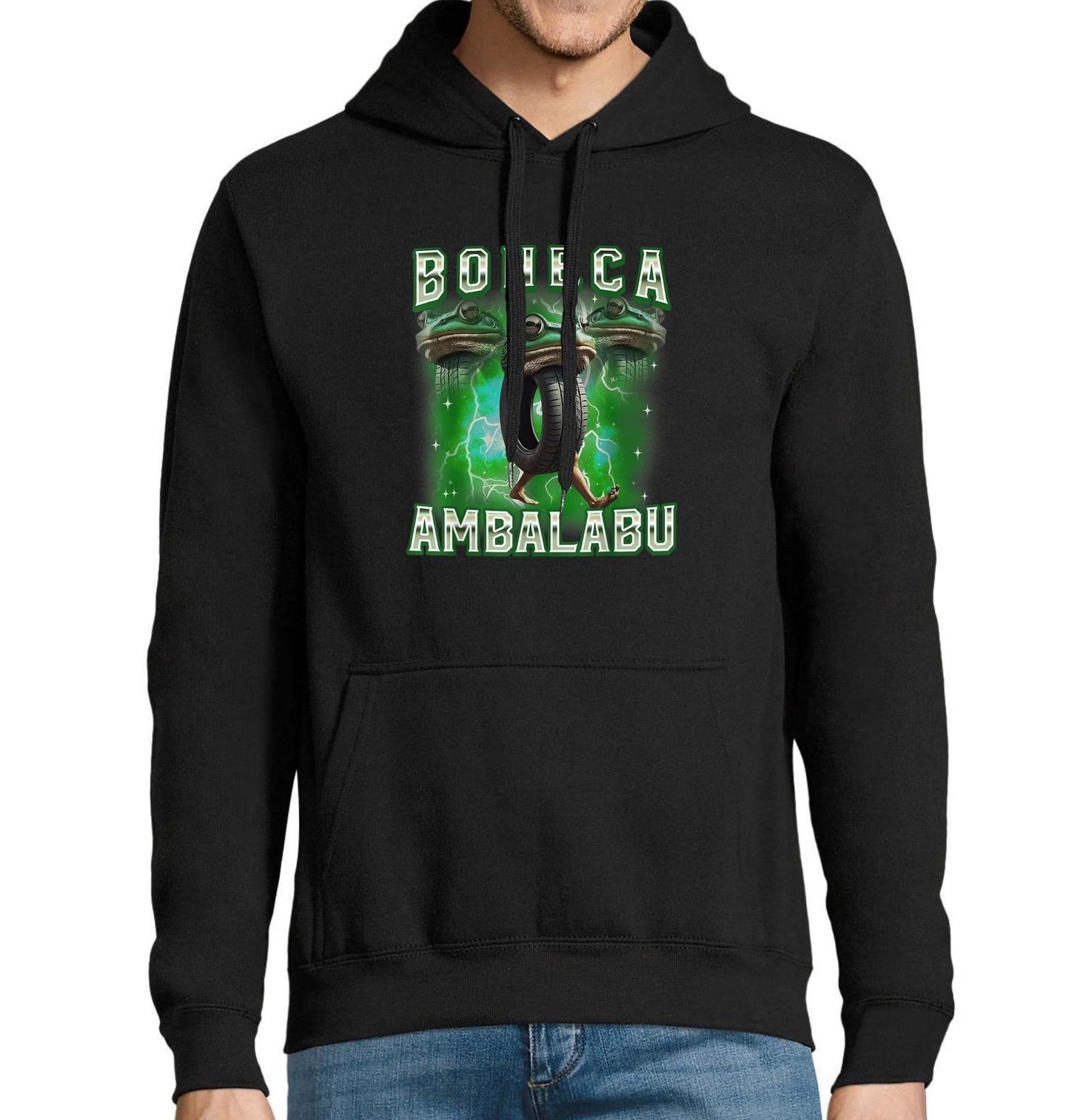 Pánská mikina Italský Brainrot Boneca Ambalabu. Italský brainrot v plné síle – kombinace žáby, lidských nohou, pneumatiky a meme energie, kterou nikdo nečekal, ale všichni potřebujeme. Pro milovníky absurdních memů, kteří se nebojí vystoupit z řady (a z logiky). Tahle žába není obyčejná – tohle je legenda na čtyři končetiny a jedno kolo.