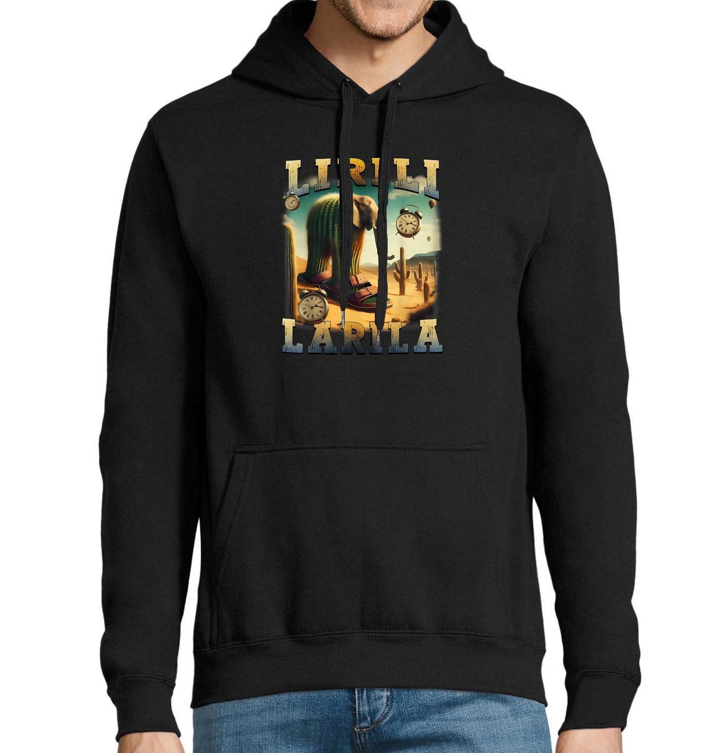 Pánská mikina Italský Brainrot Lirili Larila. Vstup do surreálnímu světa, kde slon má tělo kaktusu, nosí sandály a čas neexistuje. Tričko s motivem „LIRILI LARILA“ je ztělesněním totálního italského brainrot meme šílenství. Poušť plná hodin, groteskní proporce, výrazy beze smyslu – a právě proto to celé dává smysl. Tenhle motiv je jako z memového snu po espressu a třech nocích beze spánku.