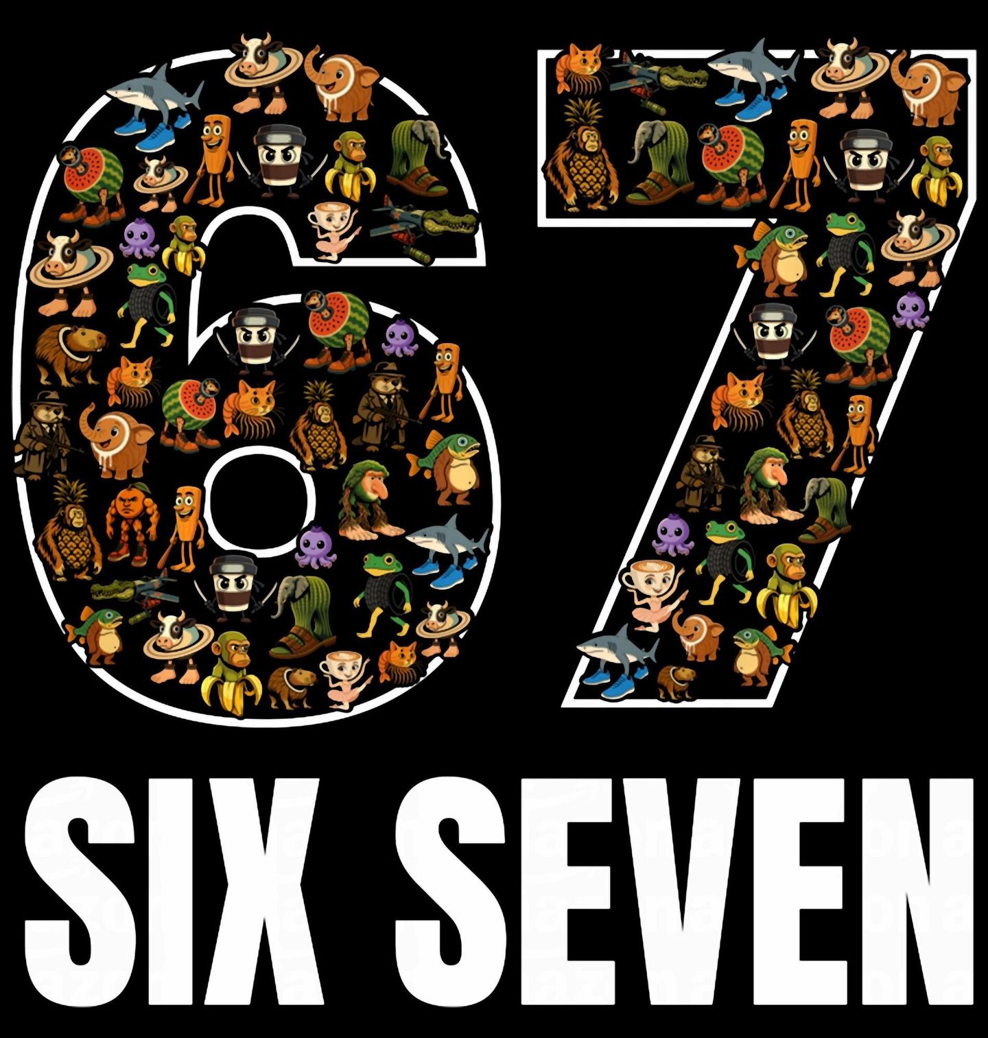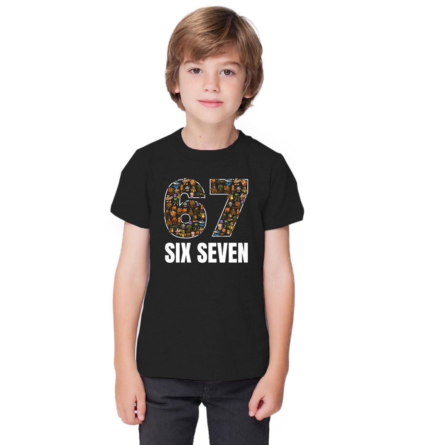 Dětské tričko Italský Brainrot Six Seven 67. SIX SEVEN je kombinací nesmyslného meme humoru a ikonického brainrot stylu, který si podmanil internet. Čísla 67 (six seven) nejsou jen náhodná – v tomto světě nic nedává smysl. Každý detail tě vtáhne do světa, kde vládne absurdita, barvy a čirý nesmysl. Přesně tak vypadá italský brainrot.