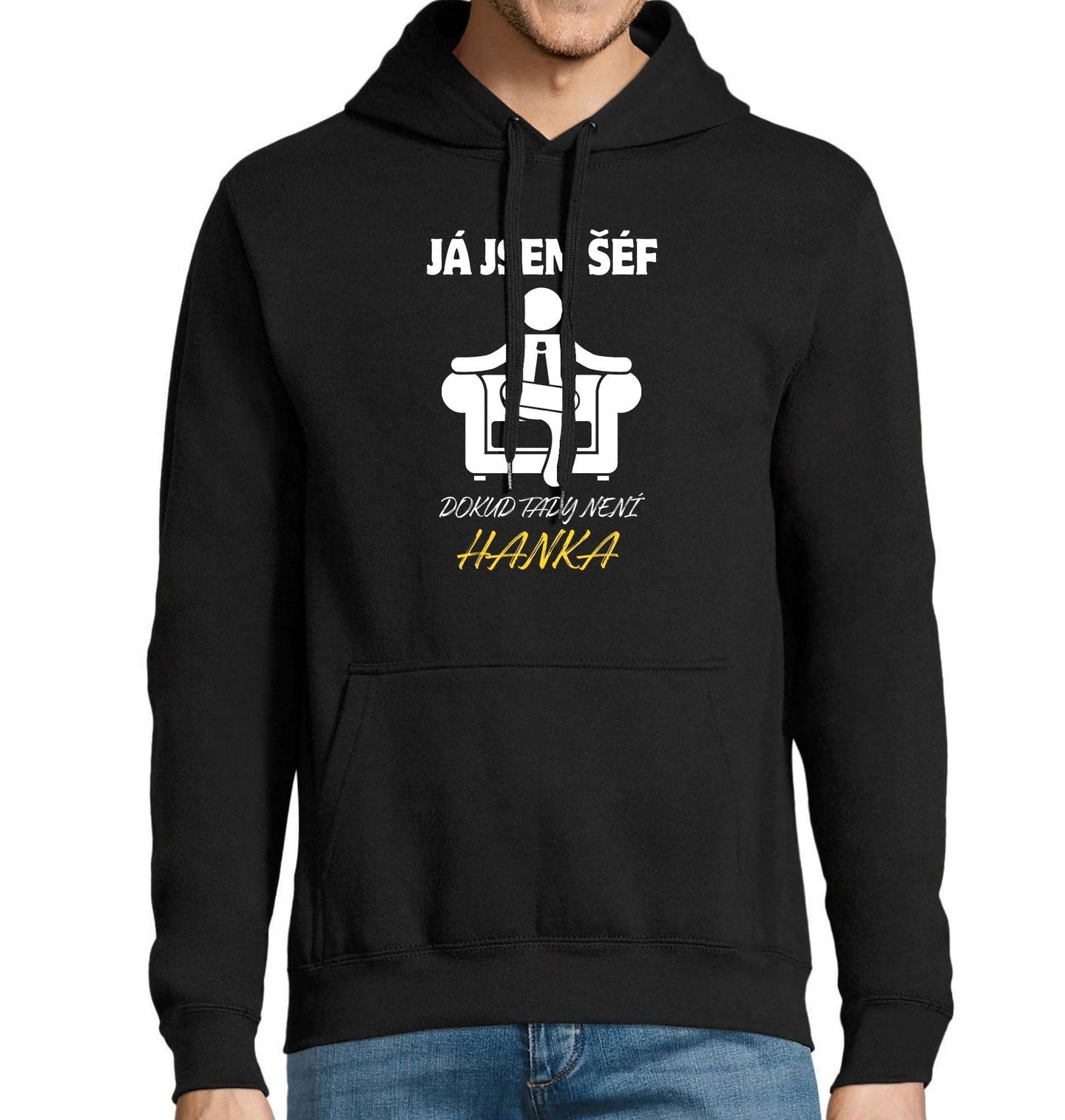 Pánská mikina Já jsem šéf, dokud tady není Hanka
