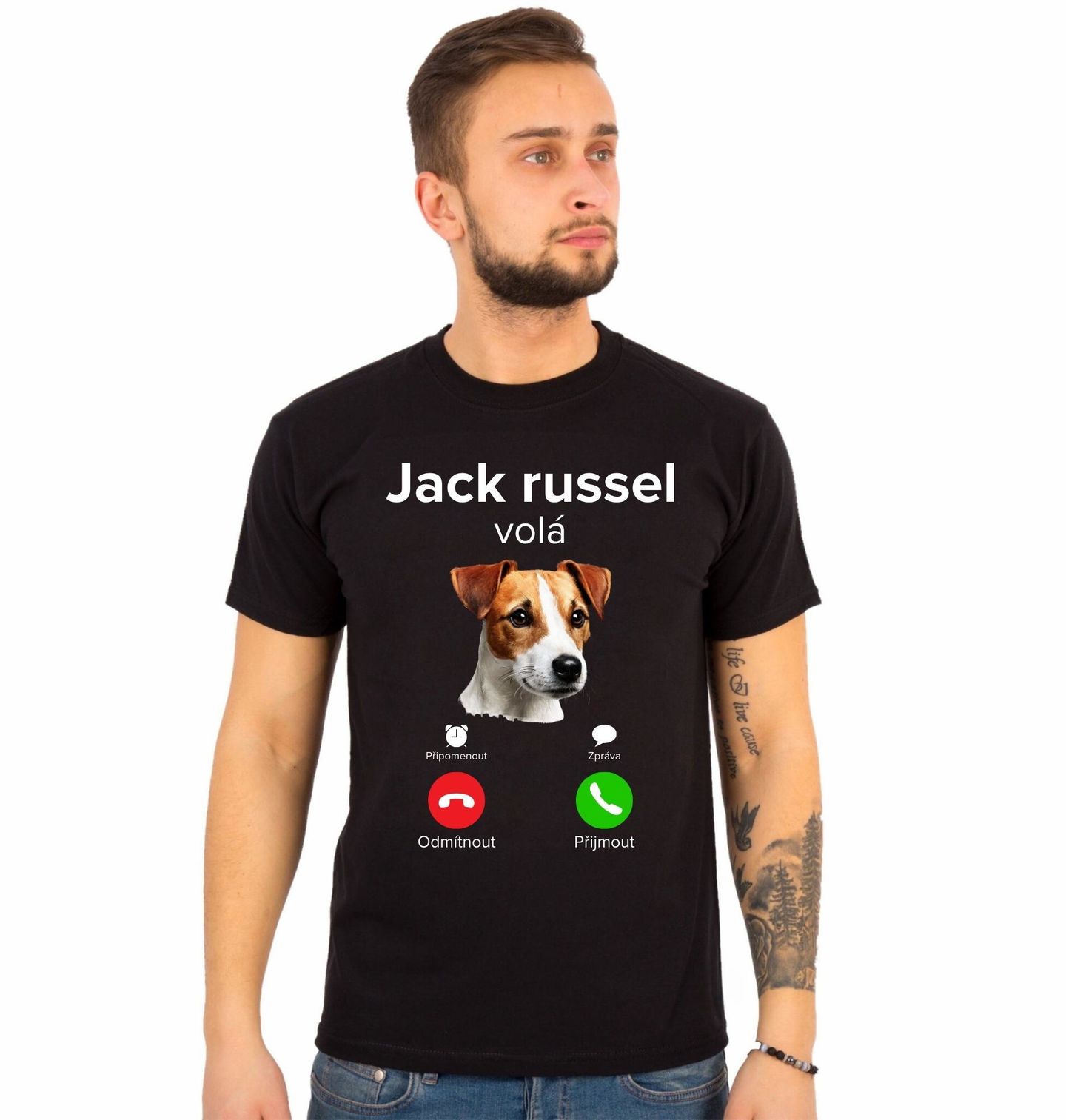 Pánské tričko Jack Russell teriér Phone Call. Jack Russell teriér je inteligentní, temperamentní pes, který je stále připravený na akci. Toto tričko je ideální pro každého, kdo je hrdý pejskař a ví, že jeho pes je plnohodnotný člen rodiny. Skvělý dárek pro všechny, kteří milují plemeno Jack Russell teriér a chtějí svou vášeň nosit stylově. Protože když pes volá, správný pejskař vždy přijímá.