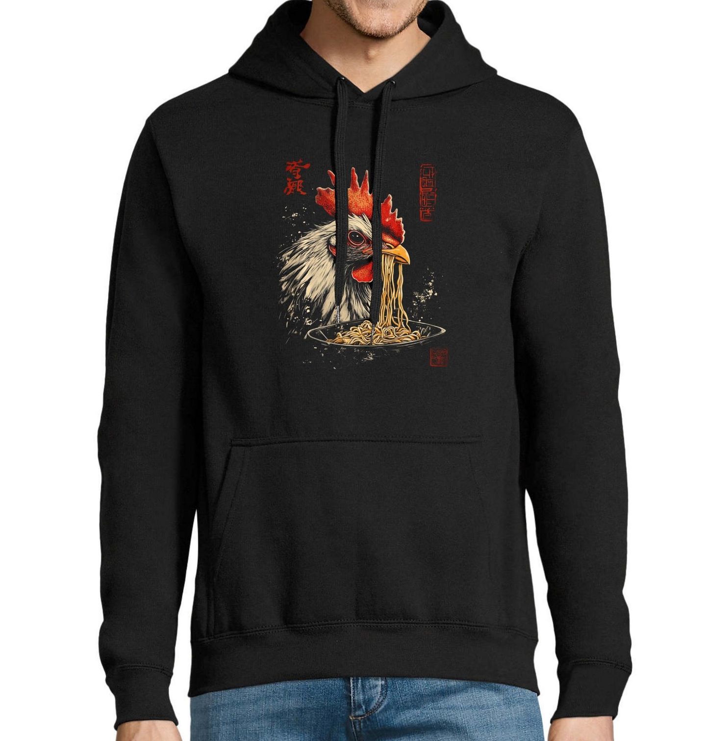 Pánská mikina Japonský Kohout a Ramen. Dominantní kohout si vychutnává misku horkých ramen nudlí – spojení, které tě přenese rovnou do rušných uliček Tokia. Stylový a vtipný design, který zaujme každého fanouška dobrého jídla. Ideální pro ty co miluji Japonsko.