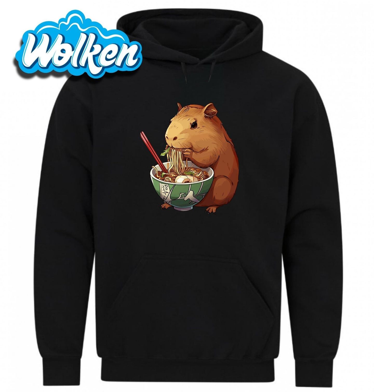 Pánská mikina Japonský Ramen s Kapybarou. Roztomilý hlodavec si pochutnává na tradiční misce ramenu – tenhle motiv přináší jedinečné spojení zvířecí pohody a chutí Japonska. Precizní ilustrace a vtipná kompozice udělají radost každému kdo miluje jídlo, Japonsko i kapybary!