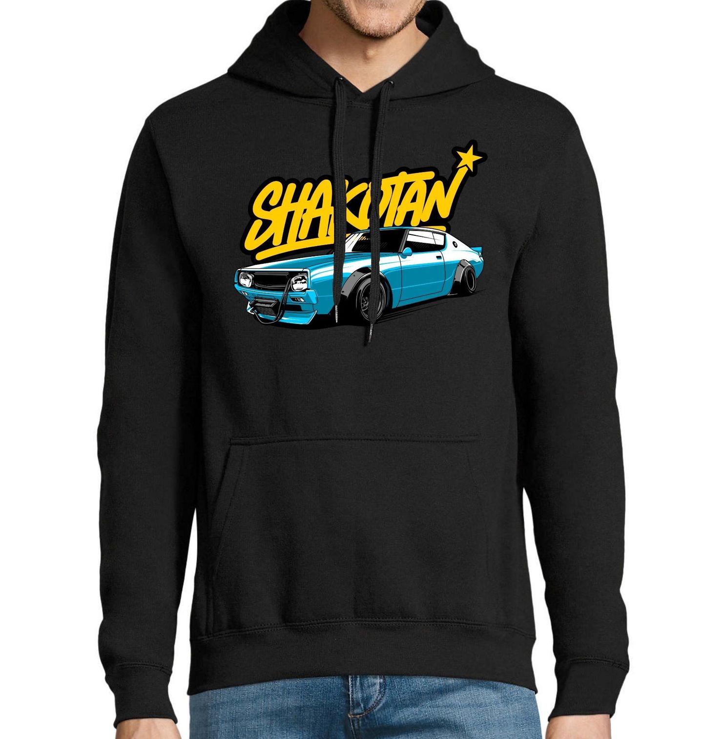Pánská mikina JDM Shakotan Car. Shakotan je japonský styl úpravy aut, který vznikl v 70. letech 20. století a vyznačuje se extrémně sníženým podvozkem, malými koly s hlubokým límcem a nataženými pneumatikami. Motiv je inspirovaný klasickým japonským sportovním vozem ve stylu Nissan Skyline, který patří mezi legendy JDM scény. Široké blatníky, nízký stance a retro závodní vzhled odkazují na tuningovou kulturu, kterou proslavilo právě Japonsko.