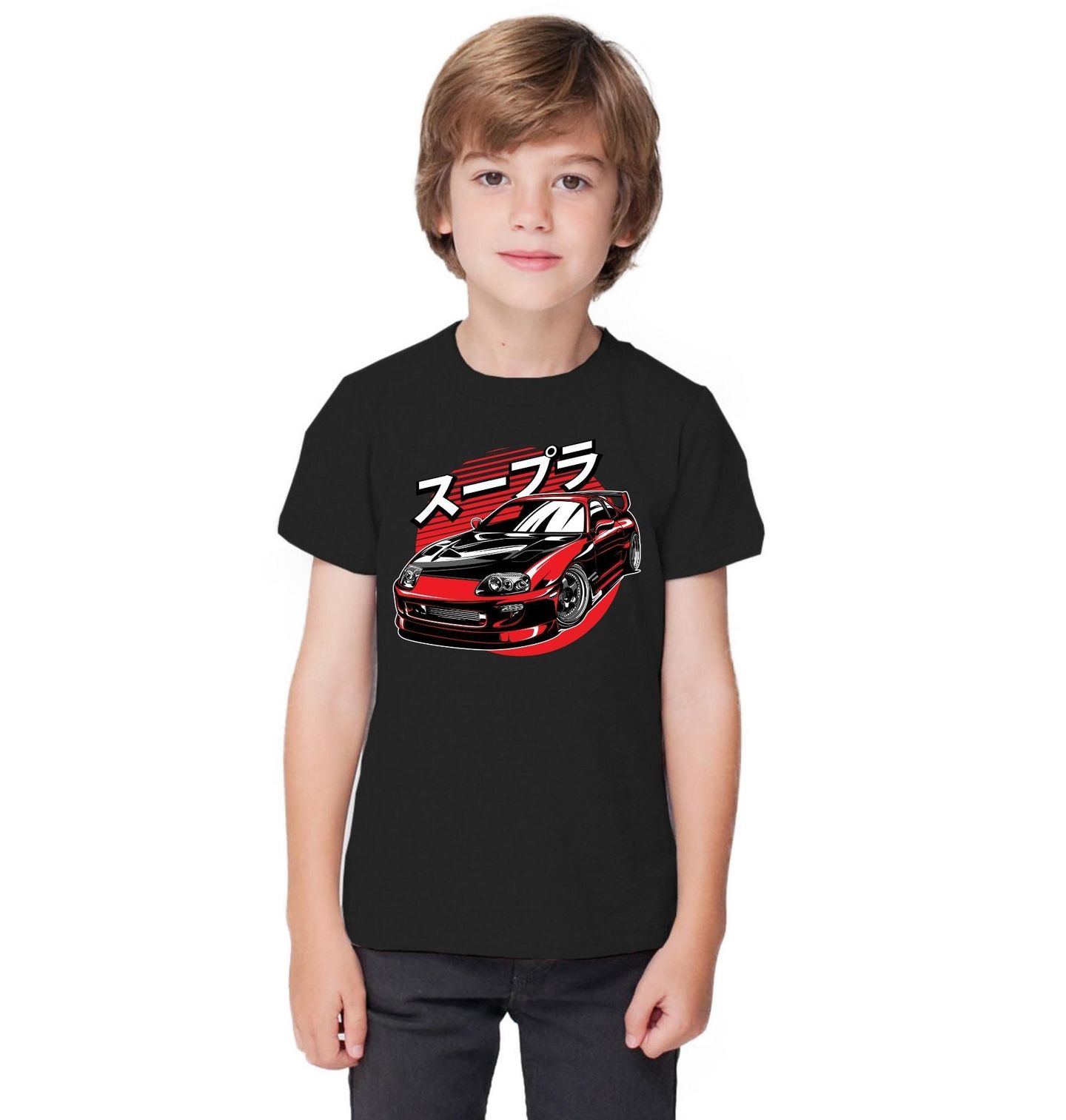 Dětské tričko JDM Supra. Výrazný motiv inspirovaný legendárním japonským modelem Toyota Supra MK4 přináší agresivní vzhled, široký bodykit a nezaměnitelný tuning styl. Toto auto se stalo symbolem JDM kultury, výkonu a pouličních závodů, které proslavilo Japonsko po celém světě.