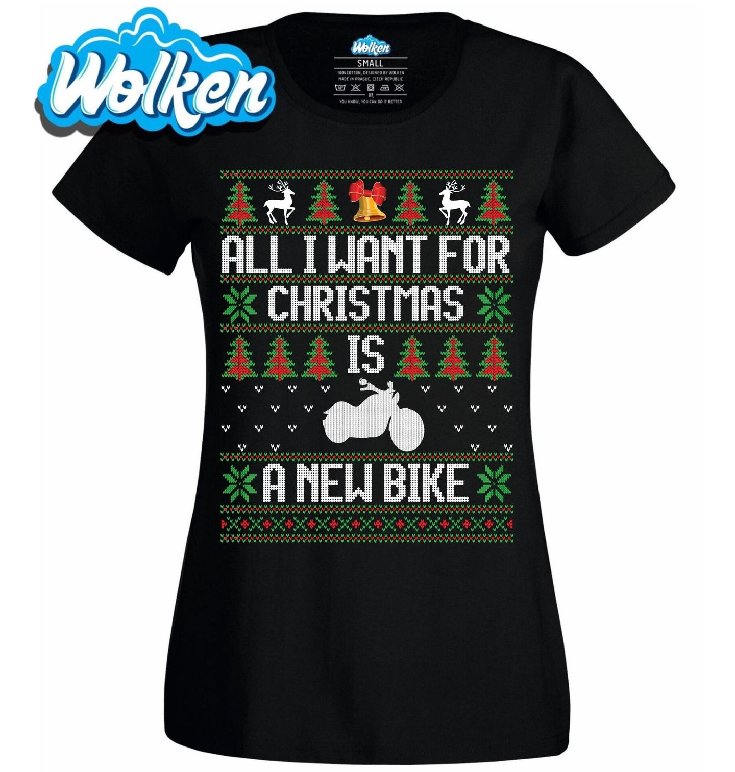 Dámské tričko Jediné, co chci k Vánocům, je nová motorka
