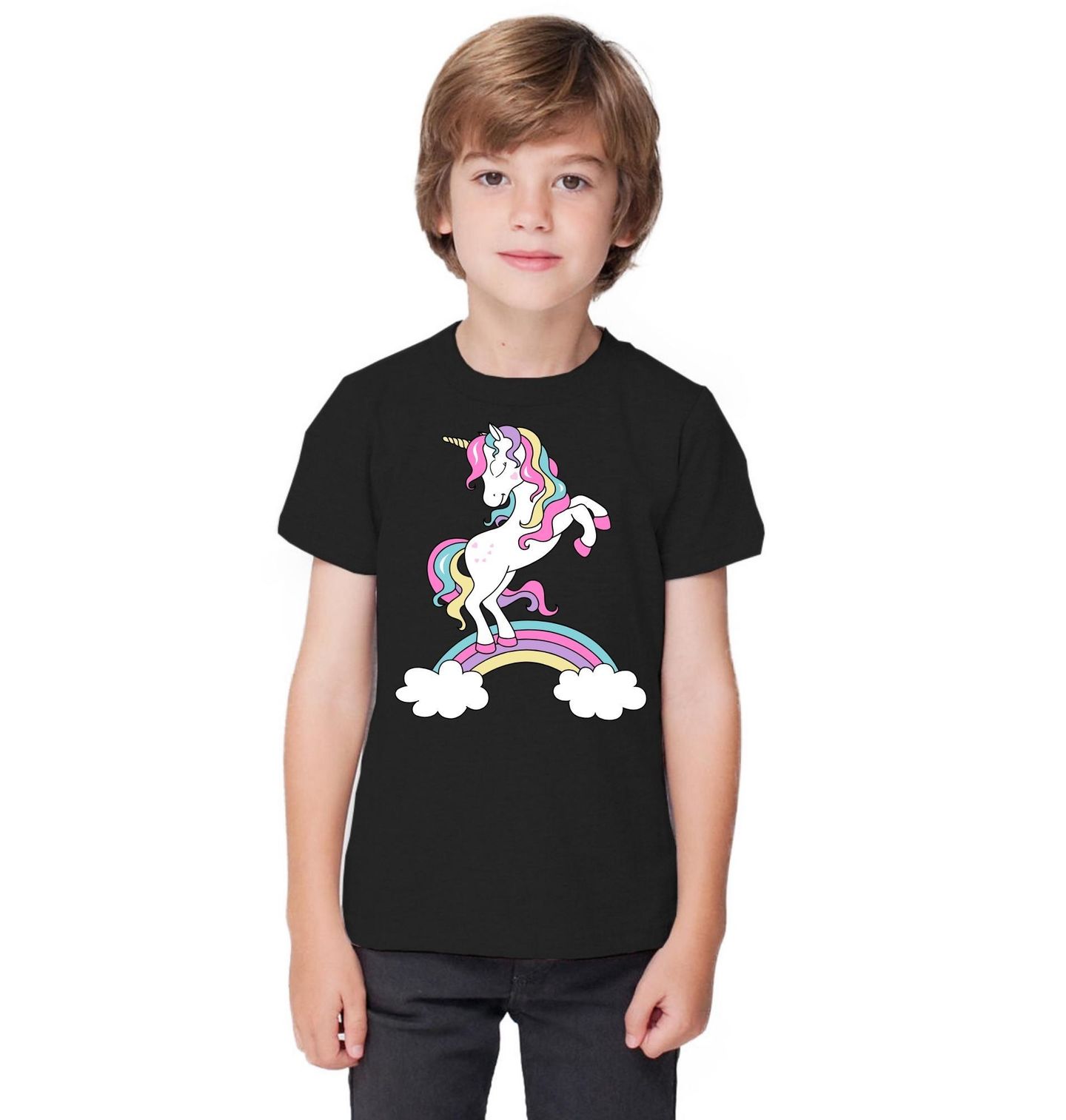 Dětské tričko Jednorožec na Duze. Roztomilý jednorožec stojící na duze přináší radost a fantazii. Pastelové barvy vytvářejí jemný a hravý vzhled. Design jednorožce je ideální pro milovníky pohádek a pozitivní energie.