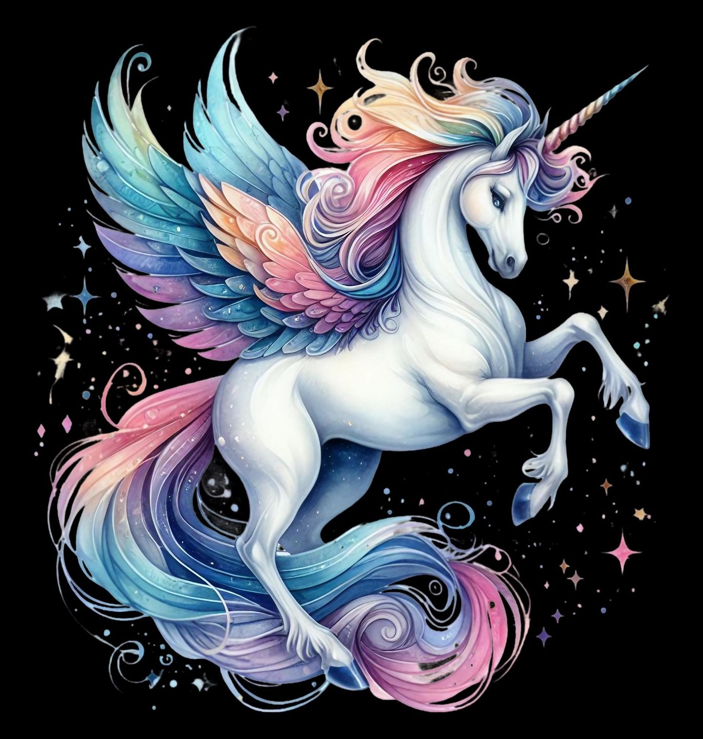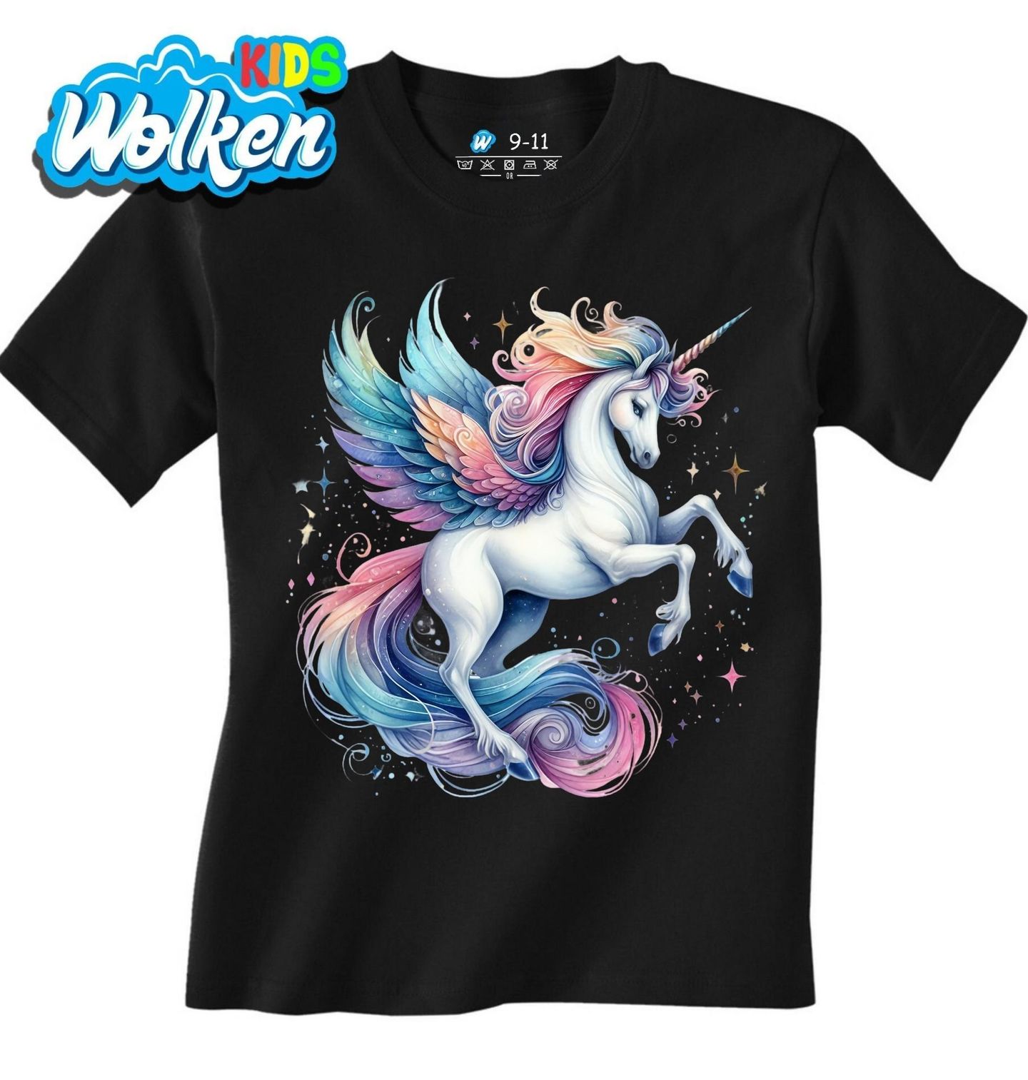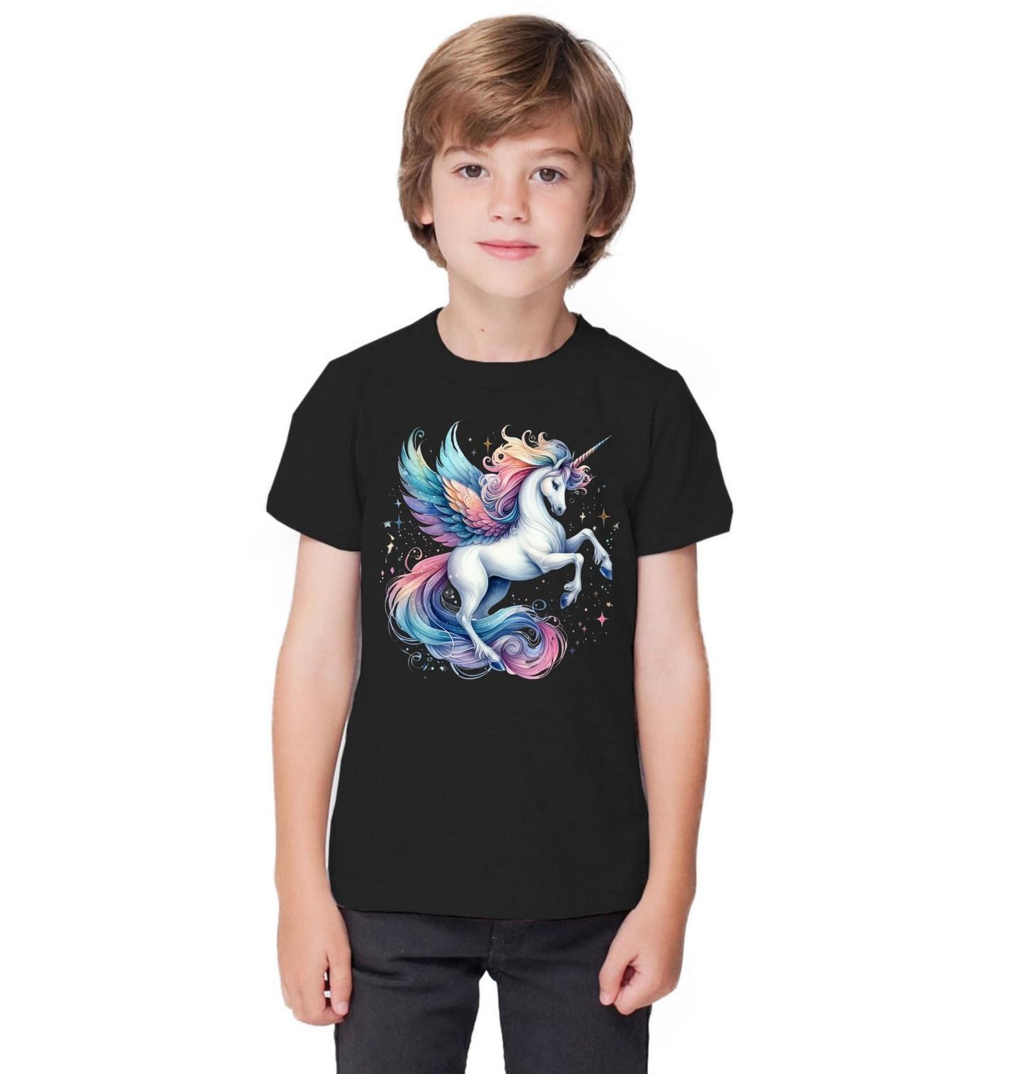 Dětské tričko Jednorožec Pegas. Tento magický jednorožec s křídly, někdy nazývaný také pegas, je jako stvořený pro děti, které milují pohádky a kouzla. Pegas (latinsky Pegasus) je v řecké mytologii okřídlený kůň, syn boha moří Poseidóna a Medúsy.