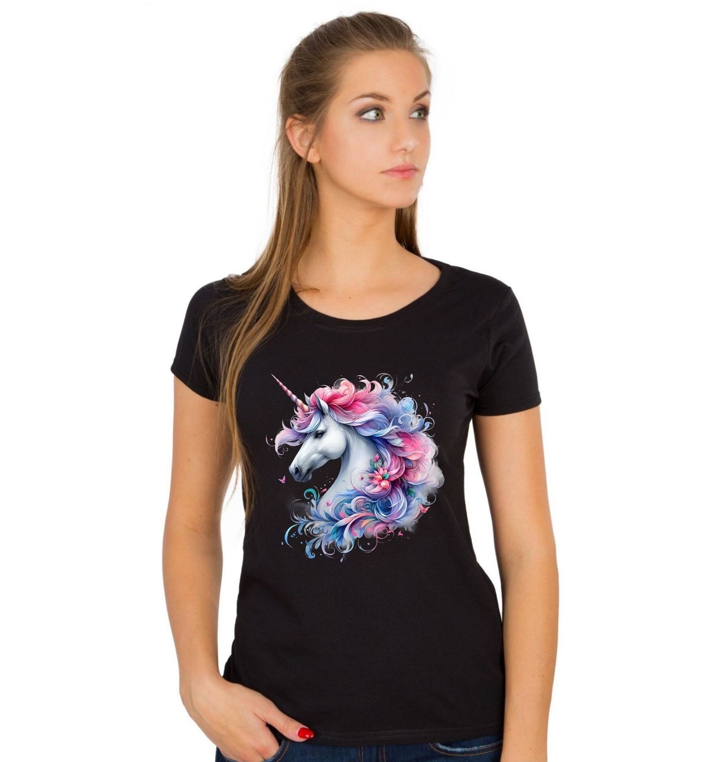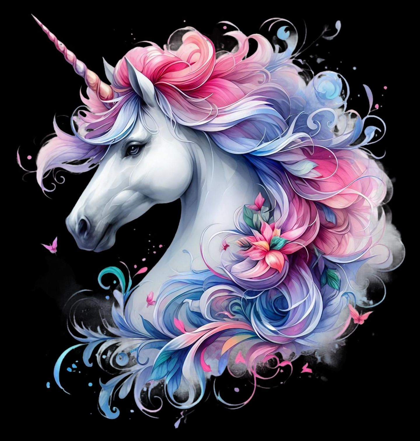 Dámské tričko Jednorožec s Růžovou Hřívou. Nádherný motiv jednorožec přináší dětem svět plný barev, fantazie a kouzelných snů. Tento elegantní jednorožec s růžovo-modrou hřívou a květinovou výzdobou okouzlí každého malého snílka. Ideální pro děti, které milují pohádky, přírodu a pastelové barvy.