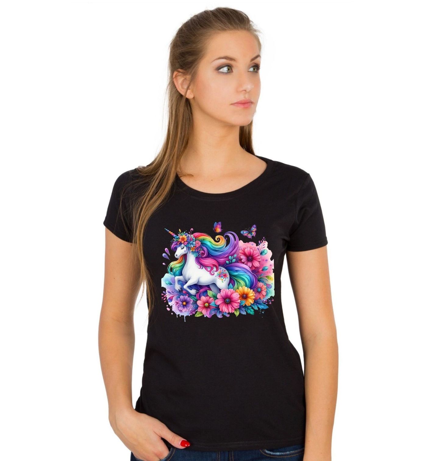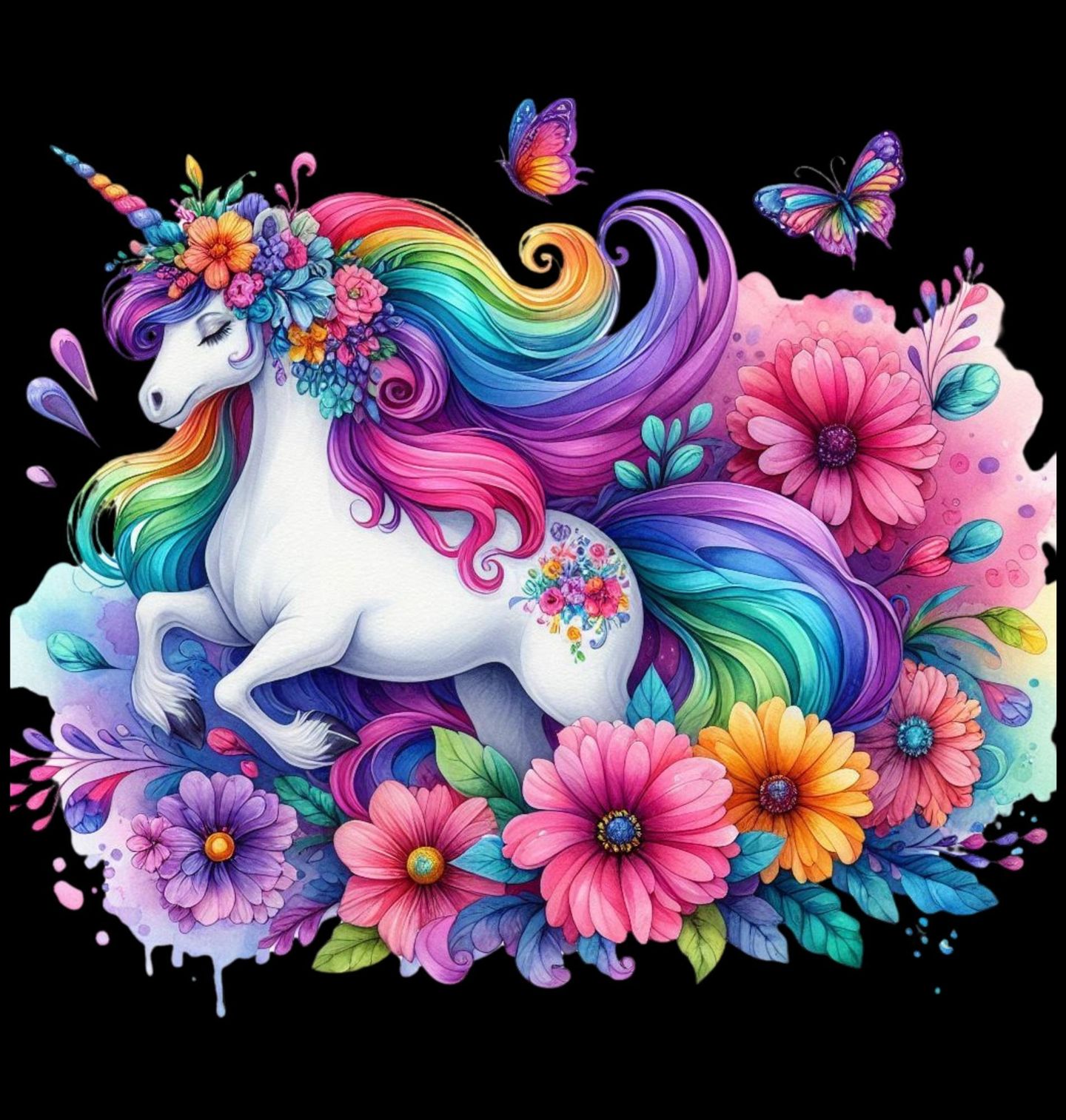 Dámské tričko Jednorožec v Květinovém Snu. Ponořte se do pohádkového světa, kde jednorožec tančí mezi zářivými květinami a motýly. Tento kouzelný motiv spojuje jemnost, fantazii a barevnou radost v jednom obrázku. Ideální pro každého milovníka magických bytostí, který chce nosit nebo darovat něco opravdu výjimečného.