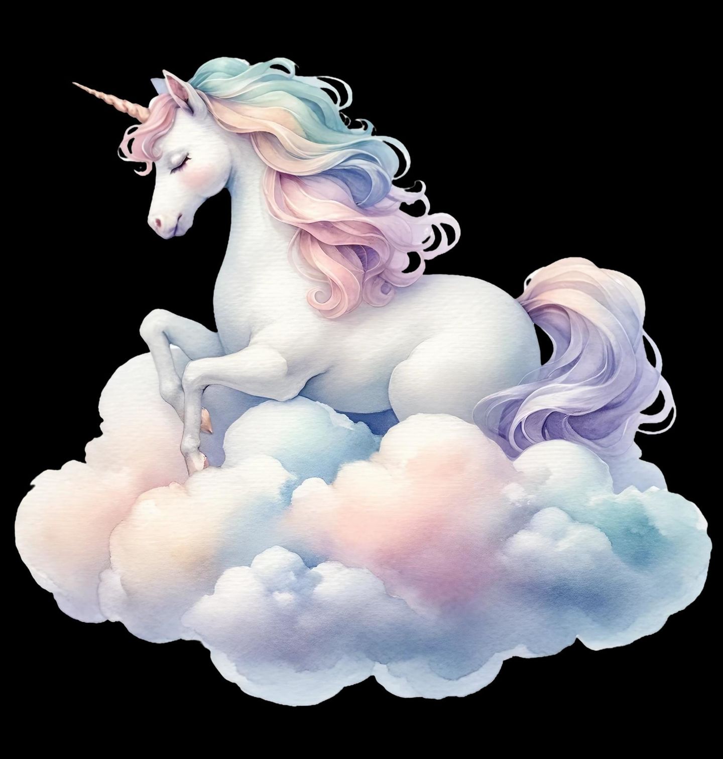 Pánské tričko Jednorožec v Oblacích. Tento něžný jednorožec odpočívající na měkoučkém obláčku v pastelových barvách je jako vystřižený z dětského snu. Ideální volba pro děti, které milují pohádky, jemné barvy a kouzelný svět plný klidu a fantazie.
