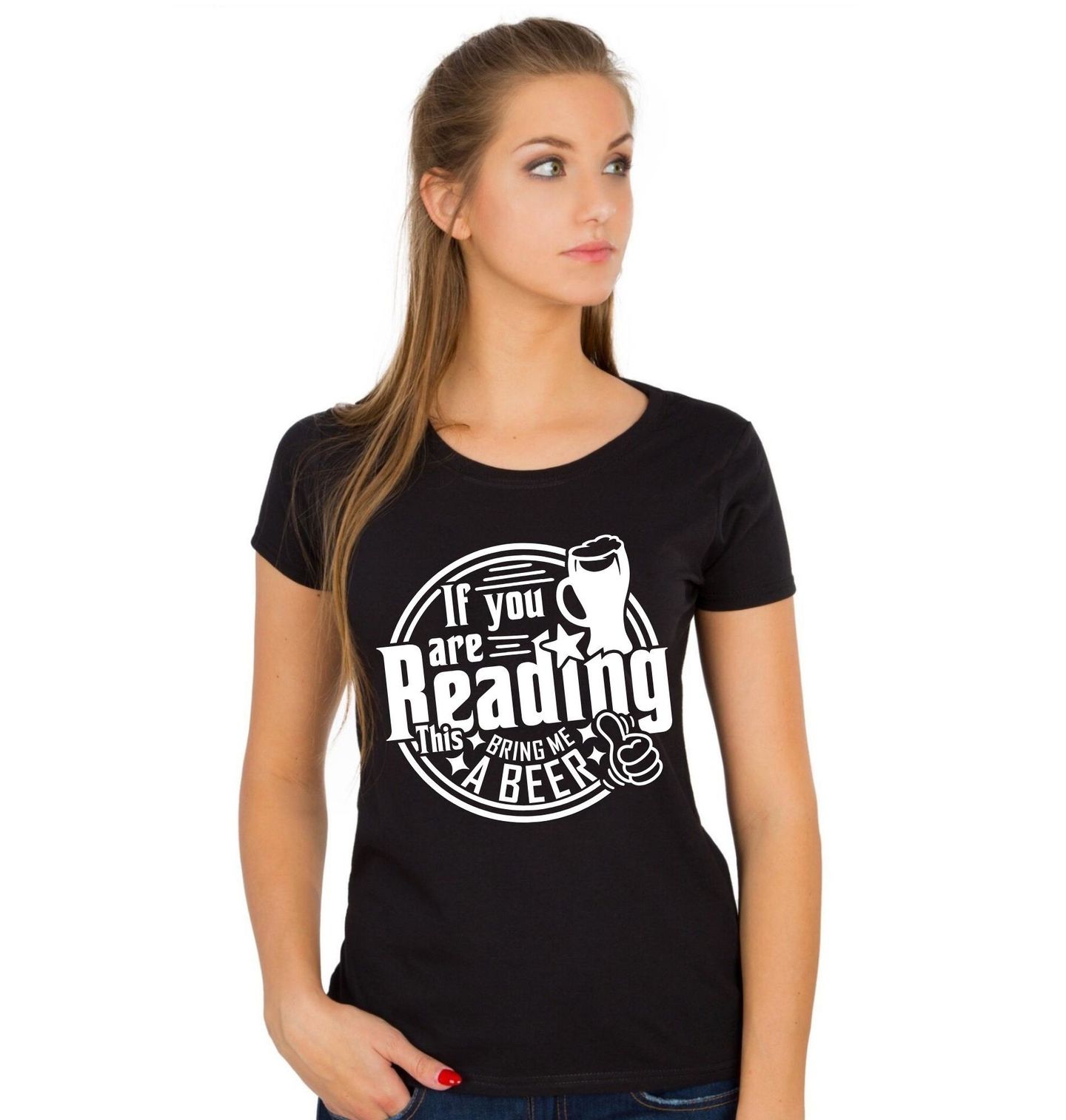 Dámské tričko Jestli tohle čteš, přines mi pivo. „If you are reading this bring me a beer“. Výrazná typografie doplněná ikonou půllitru a gestem palce nahoru vytváří jednoduchý, ale výrazný design pro každého, kdo má rád pivo a pohodovou náladu. Tento motiv je ideální pro fanoušky pivní kultury, večírků i neformálních setkání s přáteli.