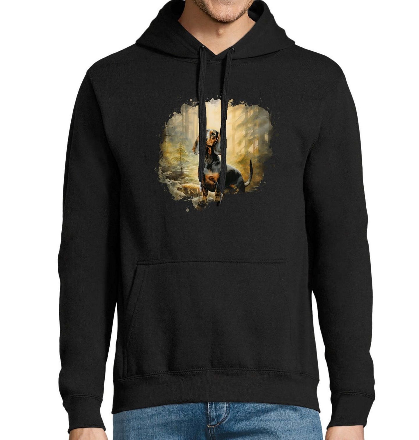 Pánská mikina Jezevčík v Lese. Toto stylové tričko s motivem jezevčíka v lesní krajině potěší každého milovníka přírody a psů. Pes v hlavní roli – věrný jezevčík – zaujme svou oddanou pozorností a elegancí. Tričko je skvělou volbou pro každého pejskaře, který si rád užívá procházky lesem po boku svého čtyřnohého parťáka.