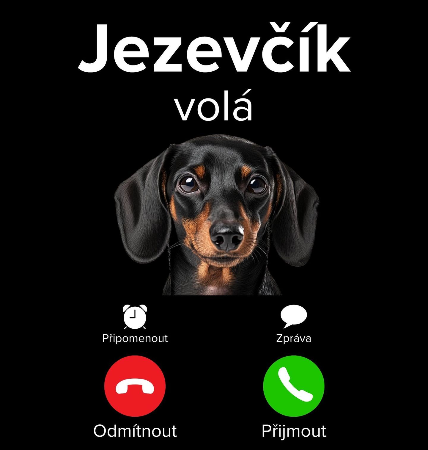 Pánské tričko Jezevčík volá Phone Call. Detailní portrét zachycuje typický výraz, dlouhé uši i chytrý pohled, který žádný pejskař nedokáže ignorovat. Jezevčík je pes s velkým sebevědomím, silnou osobností a nekonečnou energií. Ať už chce jít ven, lovit hračku nebo se mazlit, vždy si dokáže získat plnou pozornost. Tento originální design s humorem ukazuje, že když Jezevčík volá, odpověď je jasná – přijmout.