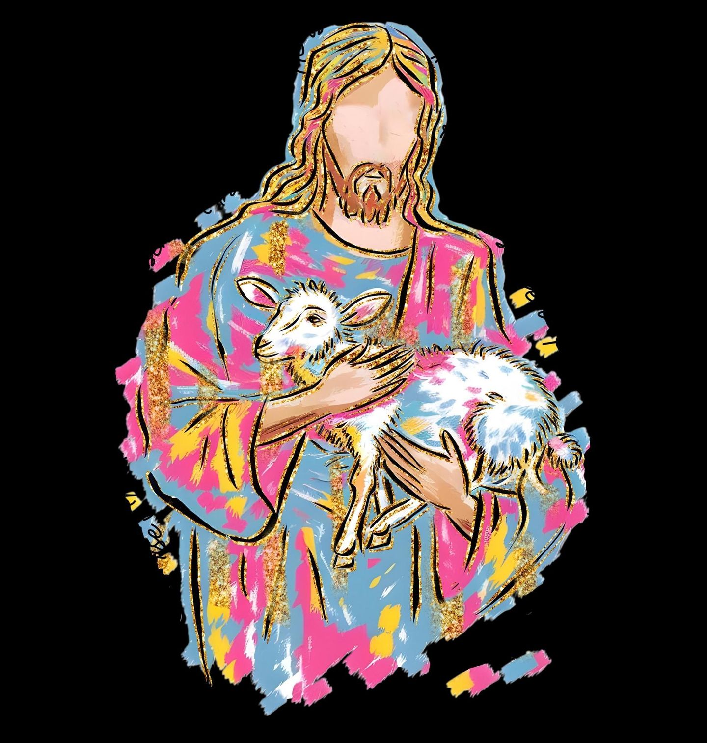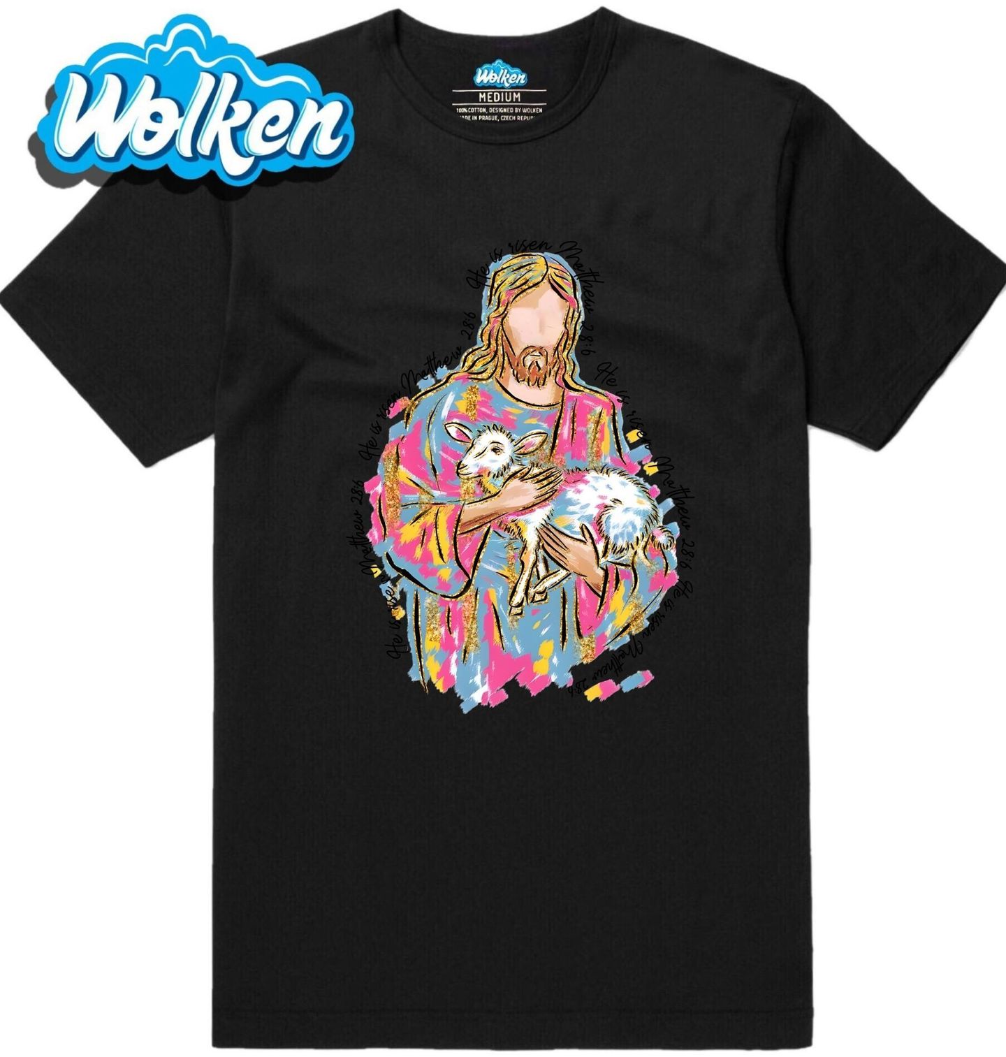 Pánské tričko Ježíš s Beránkem. Tento originální motiv zobrazuje postavu, kterou zná celý svět – Ježíš jemně držící v náručí beránek. Barevné umělecké zpracování dává tradičnímu motivu nový rozměr a propojuje klasické křesťanství s moderním stylem. Design je vhodný pro každého, kdo chce vyjádřit význam náboženství v každodenním životě.