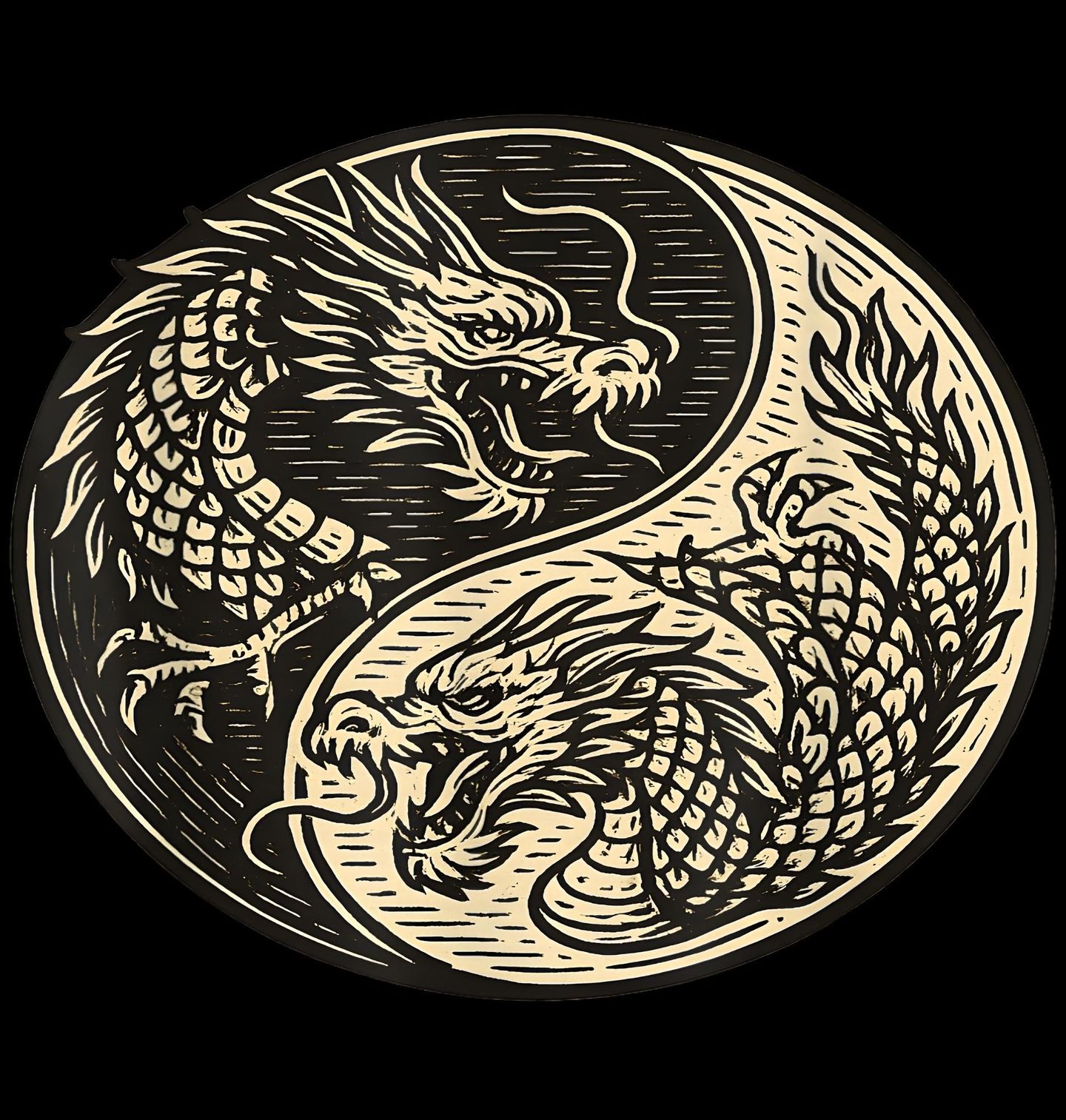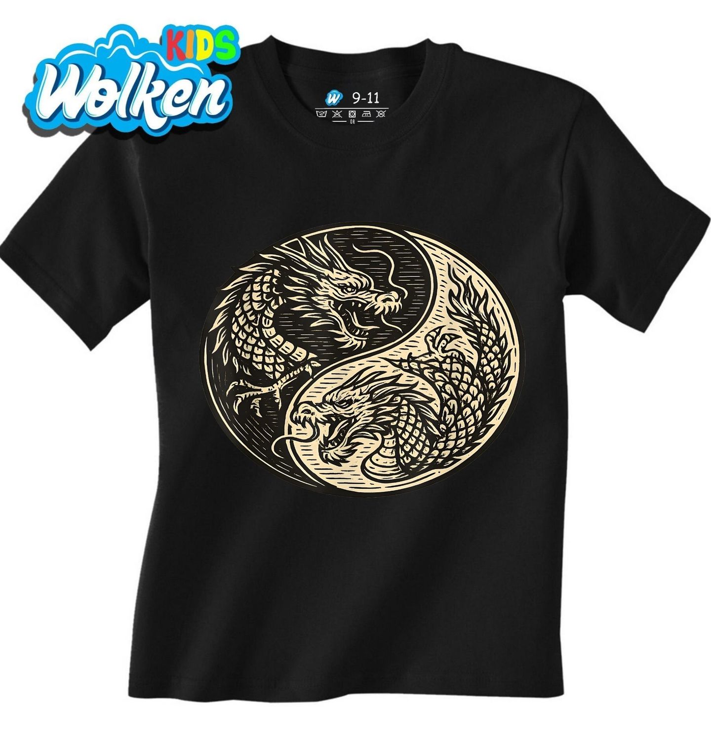 Dětské tričko Jin a Jang Drak Yin Yang Dragon. Symbolický motiv, ve kterém se spojuje moudrost draka a rovnováha jin a jang. Stylová grafika dvou propletených draků, ztvárněných v ikonickém kruhu jin a jang, přináší nejen silný vizuální efekt, ale i duchovní hloubku. Ideální pro milovníky tetování, fantasy, východní filozofie a draků