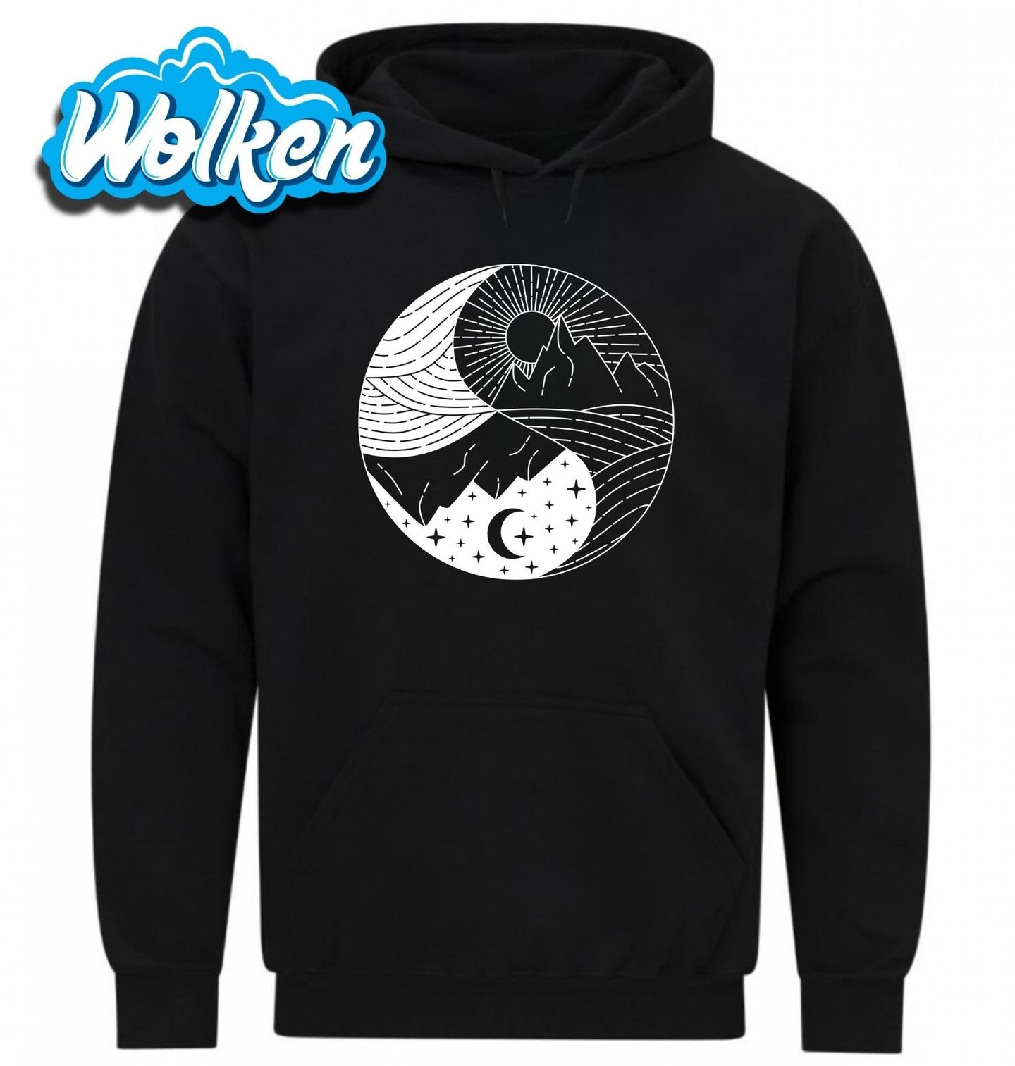 Pánská mikina Jin a Jang Hory Yin Yang Mountains. Motiv, který spojuje den i noc, světlo i tmu, klid hor a sílu nebeských těles. Slunce, měsíc a majestátní hory ukryté v symbolu jinu a jangu připomínají dokonalou rovnováhu přírody i života samotného. Ideální pro milovníky přírody, harmonie a hlubších významů.