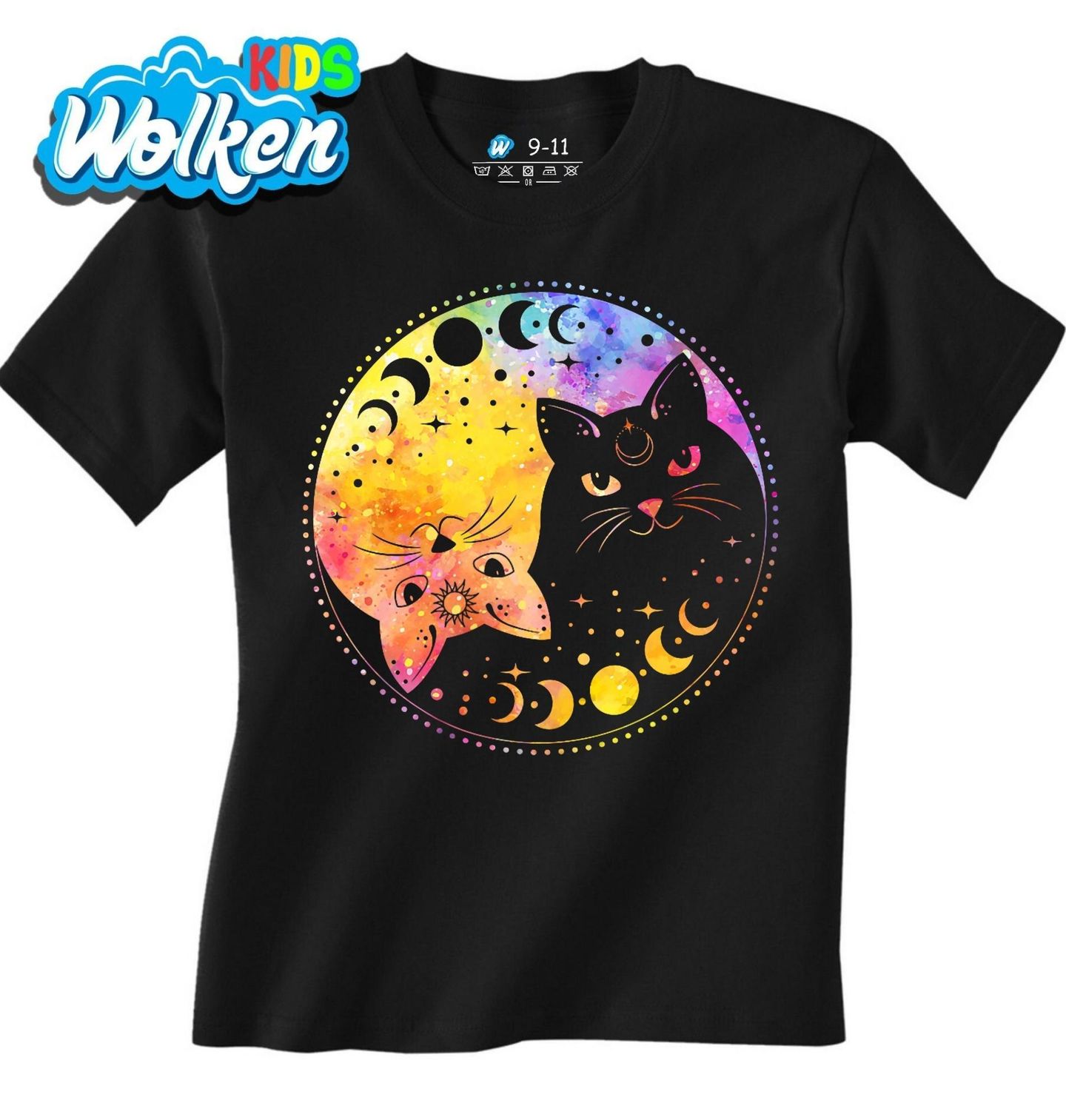 Dětské tričko Jin a Jang Měsíční Kočky Yin Yang Cats. Přivítejte harmonii a mystiku ve velkém stylu! Tento magický motiv zachycuje dvě kočky v symbolu jin a jang, obklopené barevným vesmírem a fázemi Měsíce. Spojuje spiritualitu, rovnováhu i hravost – ideální pro milovníky koček, měsíční energie a mystických symbolů.
