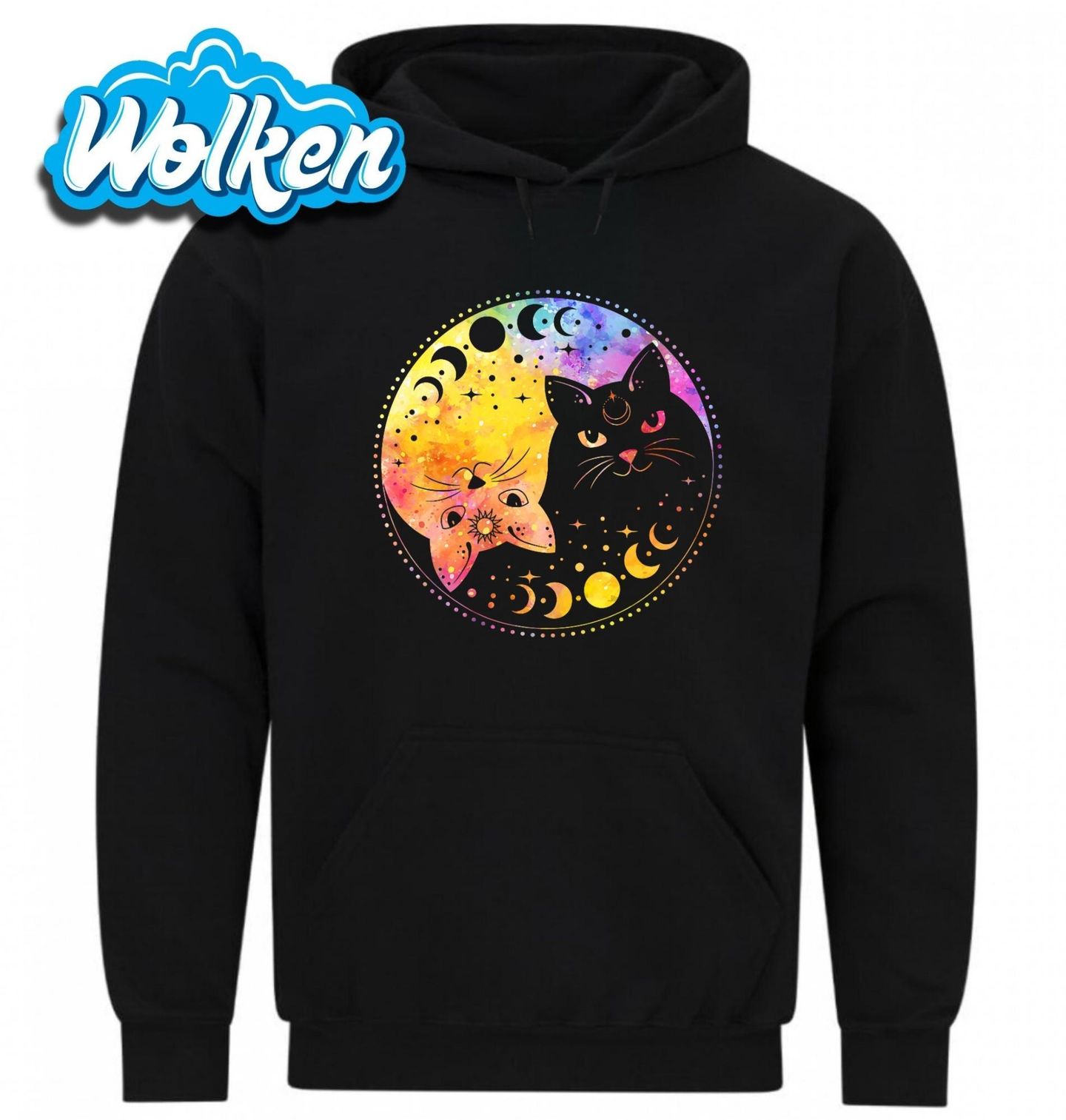 Pánská mikina Jin a Jang Měsíční Kočky Yin Yang Cats. Přivítejte harmonii a mystiku ve velkém stylu! Tento magický motiv zachycuje dvě kočky v symbolu jin a jang, obklopené barevným vesmírem a fázemi Měsíce. Spojuje spiritualitu, rovnováhu i hravost – ideální pro milovníky koček, měsíční energie a mystických symbolů.