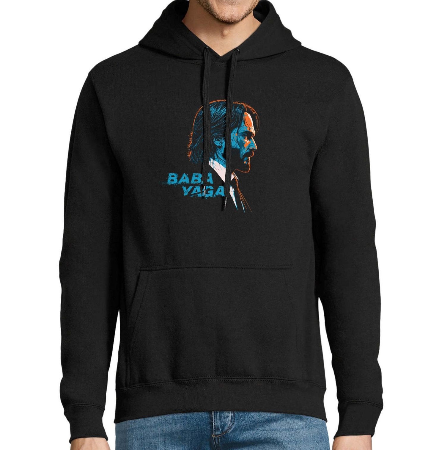 Pánská mikina John Wick Baba Yaga. Tento motiv inspirovaný postavou z legendárního filmu John Wick zachycuje nájemného zabijáka přezdívaného "Baba Yaga" – muže, kterého posílají zabít samotné noční můry. Skvělý dárek pro milovníky akčních filmů.