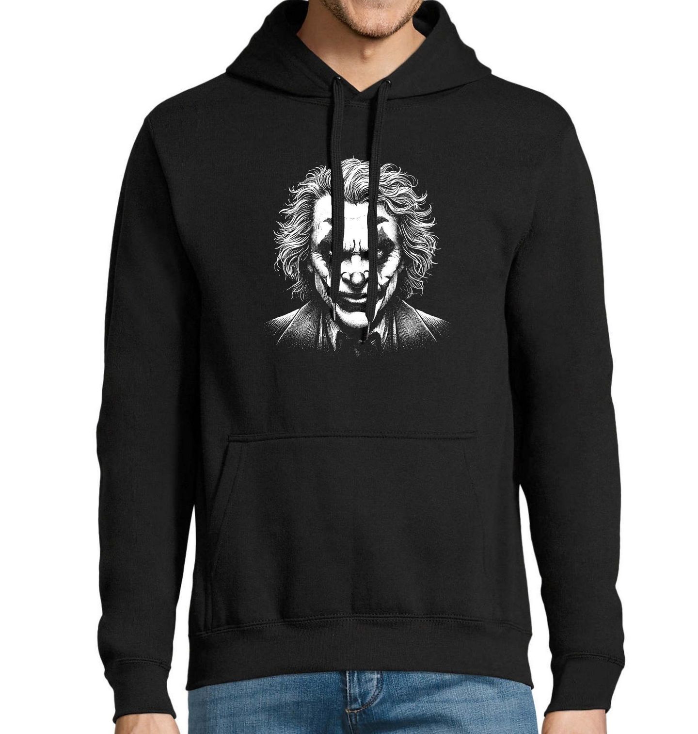 Pánská mikina Joker Úsměv šílenství. Temný úsměv, šílený pohled a tvář, která skrývá víc než jen klaunskou masku. Tento motiv je inspirován ikonou anarchie a vnitřního rozporu – klaunem, který ztělesňuje šílenství i genialitu. Pokud máš rád psychologickou hloubku, temné horory a jsi rebel, tohle tričko je přesně pro tebe.