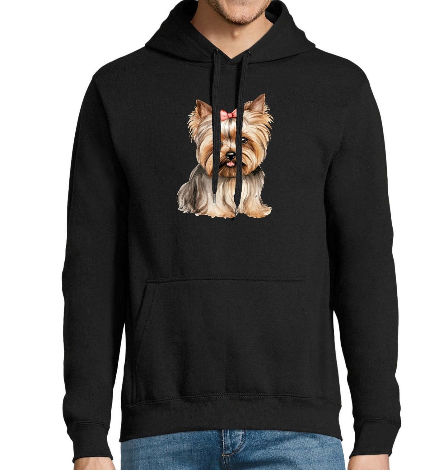 Pánská mikina Jorkšírská teriérka s Mašlí. Tento motiv je dokonalou kombinací roztomilosti a elegance, která podtrhne osobnost každého pejskaře. Hodí se nejen na procházku se svým psem, ale i na běžné nošení – zkrátka ideální pro každou příležitost. Každý pes by byl pyšný, kdyby jeho páníček nosil tričko s tak krásným portrétem jeho plemene.
