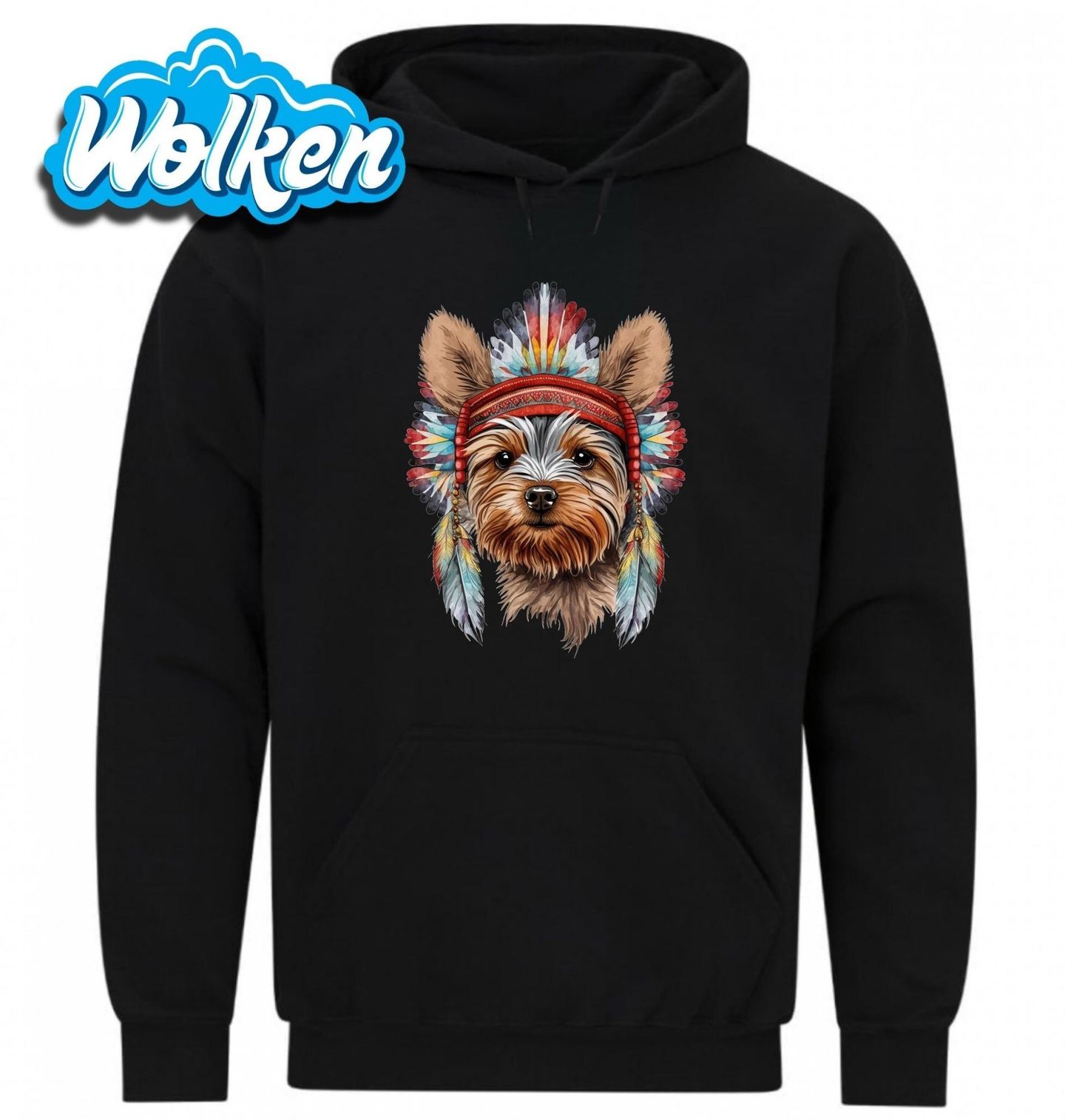 Pánská mikina Jorkšírský Indián. Tento motiv s odvážnou kresbou roztomilého Jorkšírského teriéra v indiánské čelence tě dostane! Stylový potisk osloví každého pejskaře, který miluje originalitu a svého čtyřnohého hrdinu. Tričko je ideální volbou pro každého, koho baví pes a výrazný motiv s duší dobrodruha.