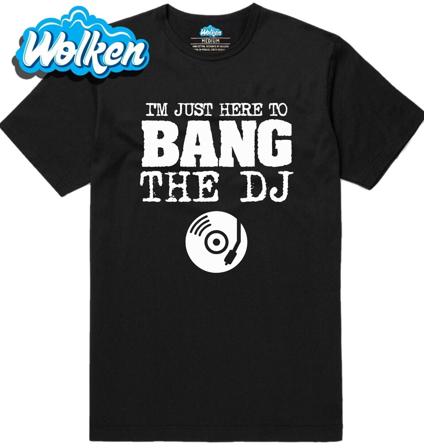 Pánské tričko Jsem tu jen kvůli DJovi. „I’m Just Here to Bang the DJ“ česky: „Jsem tady jen proto, abych sbalil(a) DJ(e).“ Ideální outfit na koncerty, festivaly, hudba eventy i noční kluby. Pokud miluješ párty, dobrý vibe a energii, kterou přináší každý DJ, tohle tričko je pro tebe jako stvořené.
