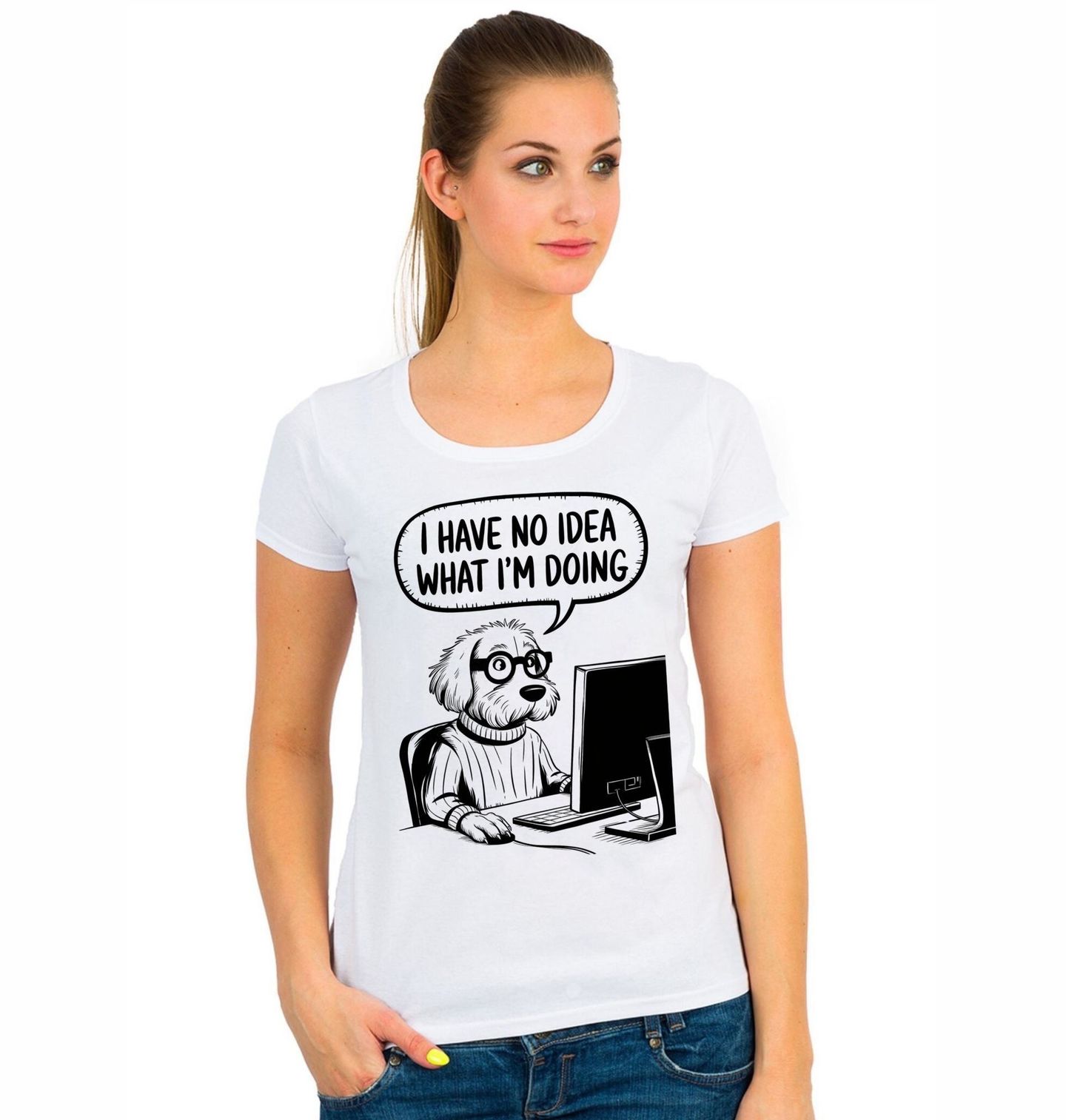 Dámské tričko Kancelářský Pes u Počítače Nemám vůbec tušení, co dělám