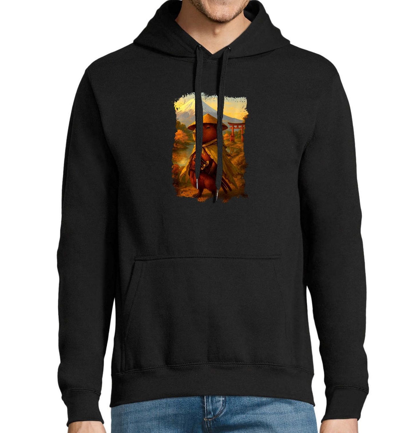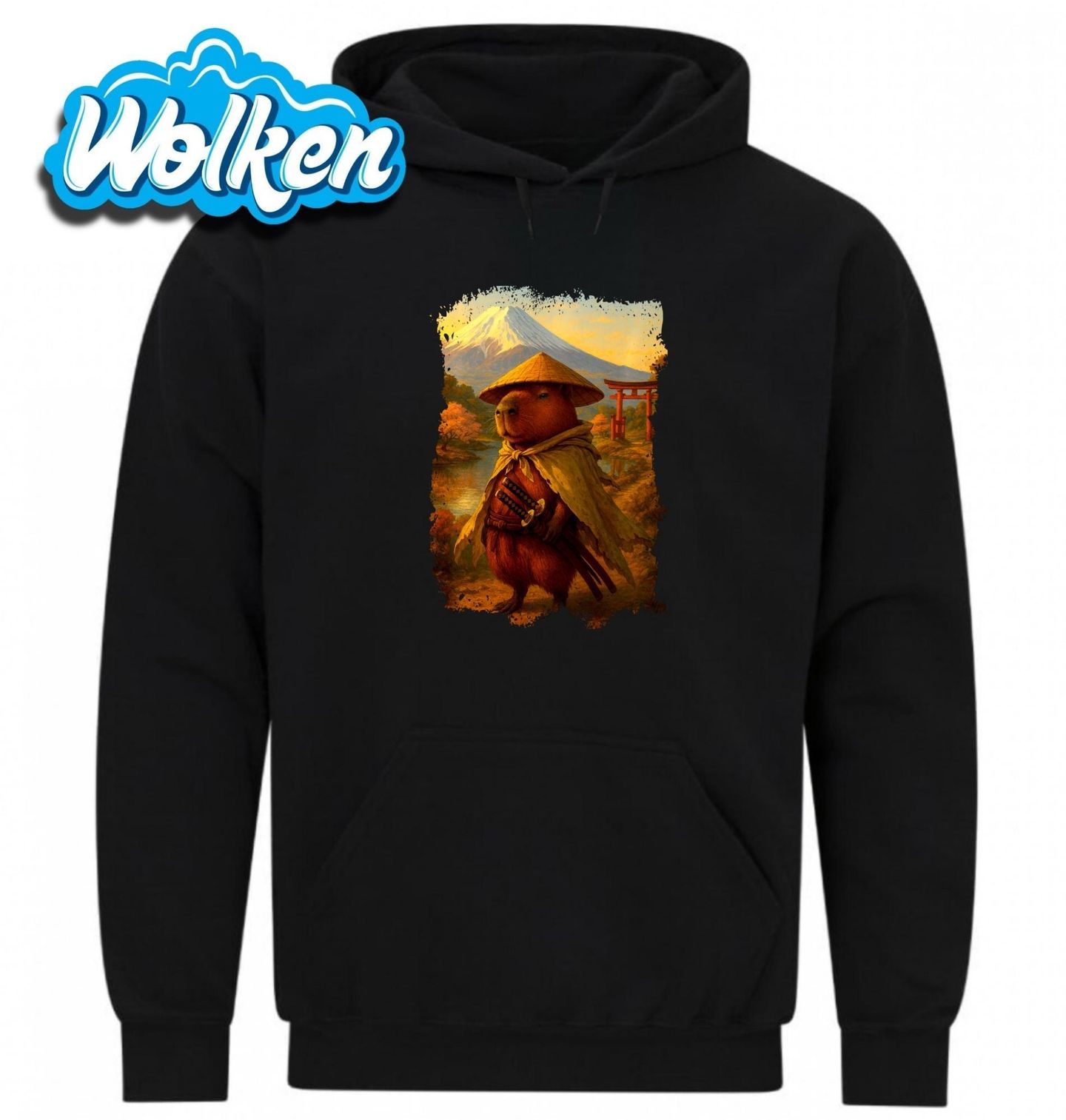 Pánská mikina Kapybara Samuraj. Hrdý hlodavec ve zbroji samuraje stojí v malebné japonské krajině s horou Fudži v pozadí a meči u pasu. Tento epický motiv spojuje klid a moudrost kapybary s odvahou a čestností japonských bojovníků. Ideální pro ty, co milují Japonsko a kapybary.