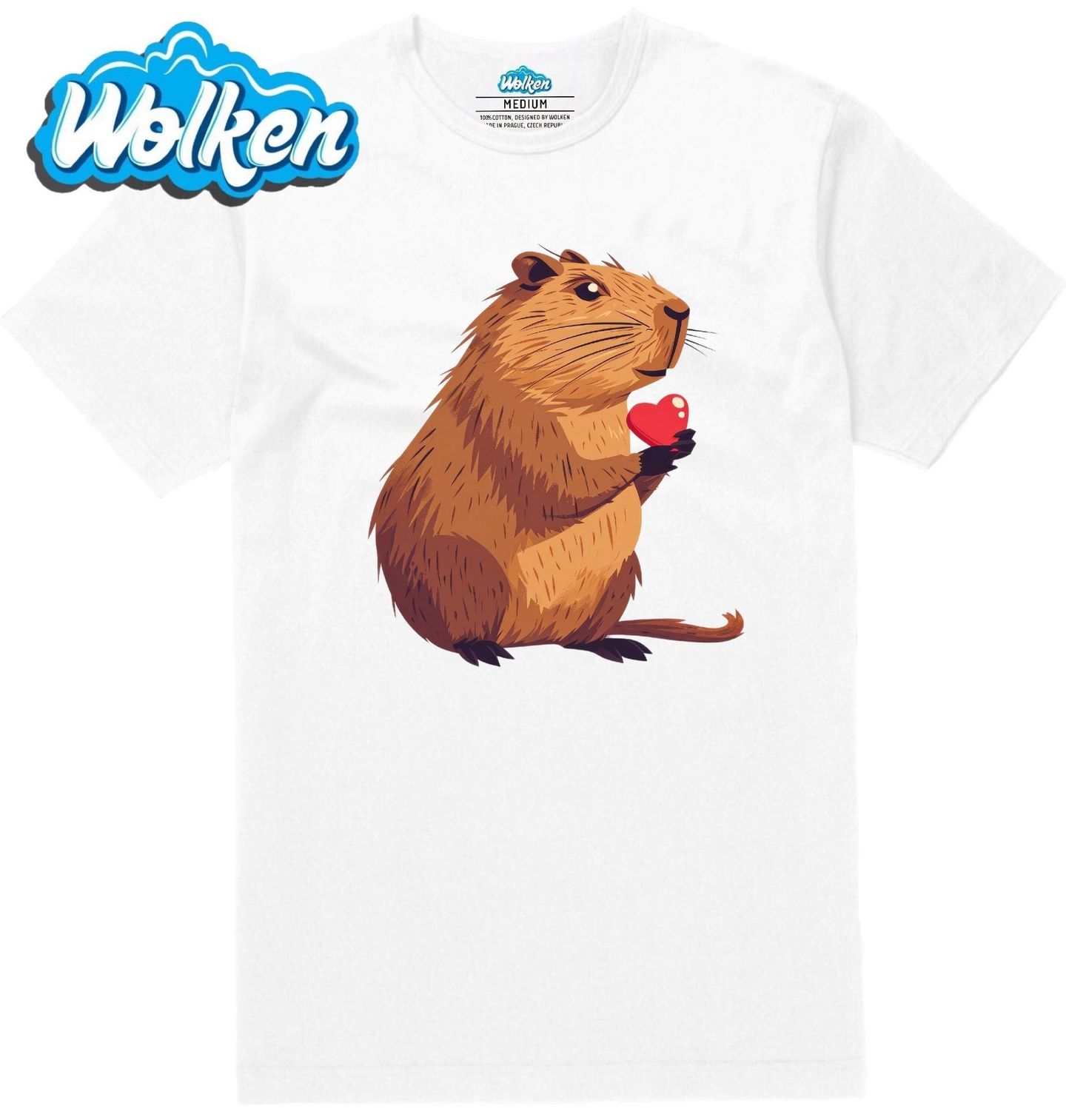 Pánské tričko Kapybara se Srdem. Roztomilý motiv, kde kapybara – největší hlodavec světa – drží srdce jako symbol lásky a klidu. Ideální pro každého milovníka zvířat, který chce ukázat svou náklonnost nejen ke kapybaře, ale i ke světu kolem sebe. Kapybara jako hlodavec s velkým srdcem vám zlepší den i outfit.