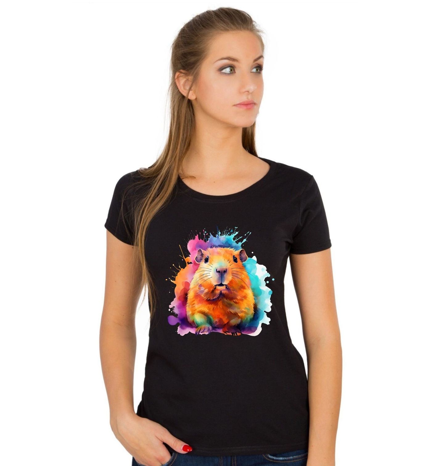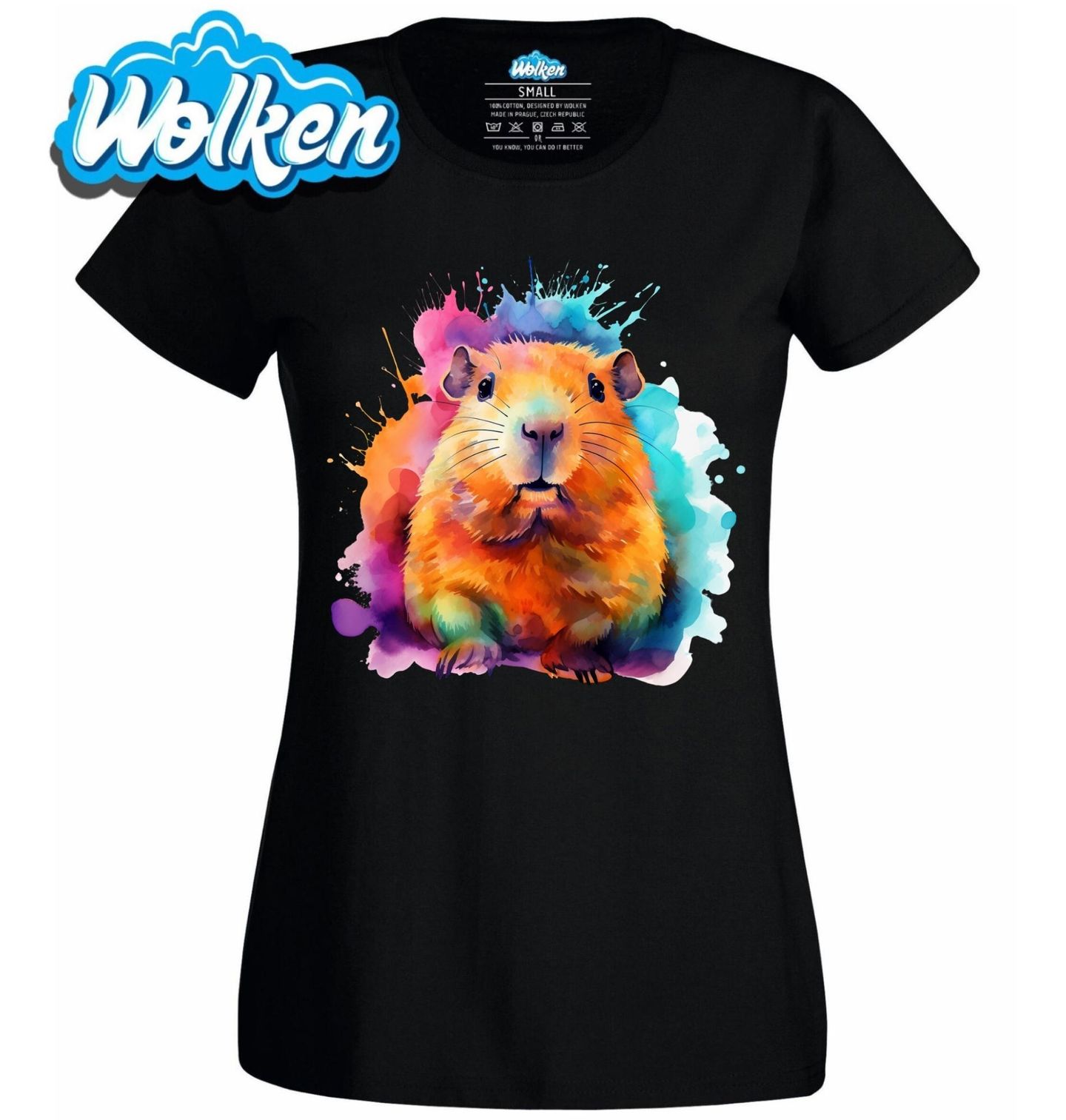 Dámské tričko Kapybara v Barvách. Kapybara, největší hlodavec na světě v netradičním akvarelovém podání. Barevné cákance vytvářejí z obyčejného zvířete výjimečné umělecké dílo, které upoutá každého milovníka originality. Kapybara je symbolem klidu a pohodového života – a přesně tohle vyzařuje i tento motiv.
