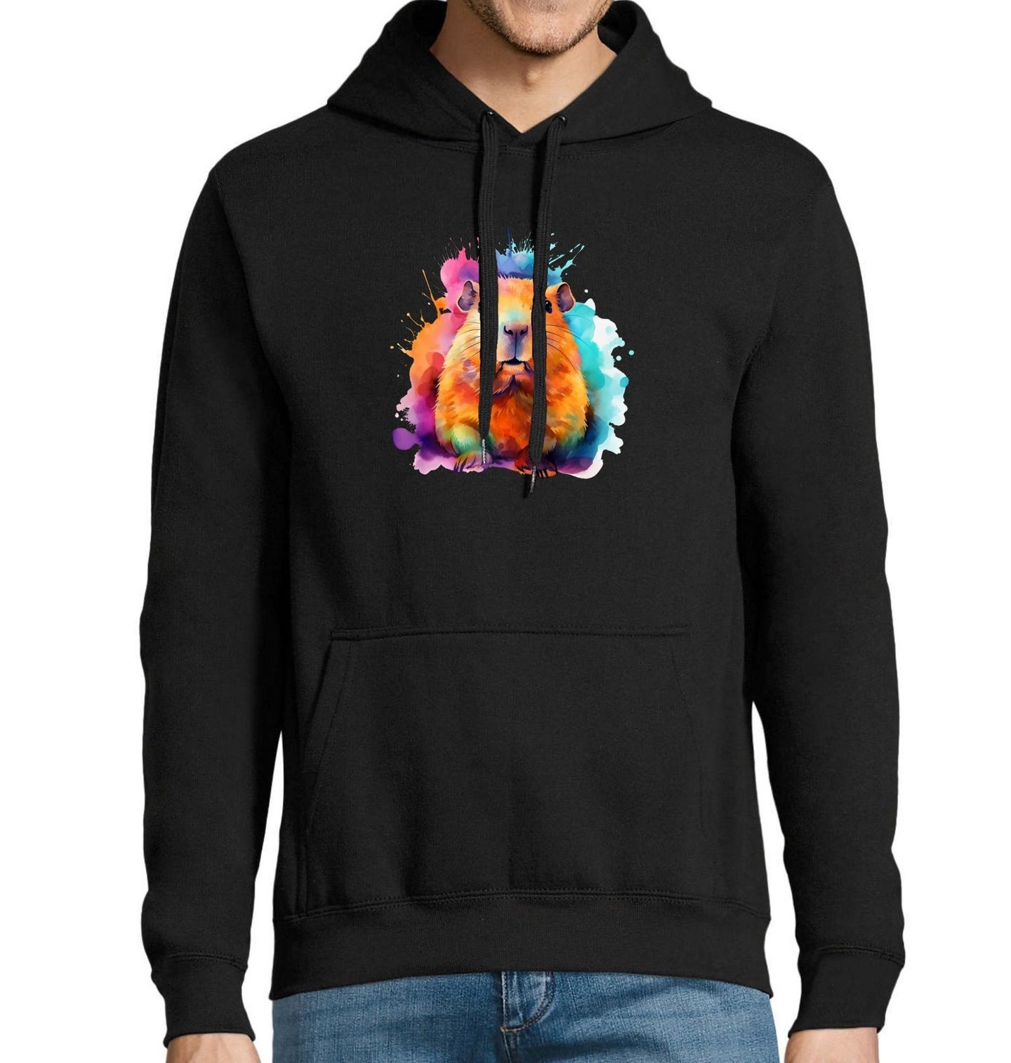 Pánská mikina Kapybara v Barvách. Kapybara, největší hlodavec na světě v netradičním akvarelovém podání. Barevné cákance vytvářejí z obyčejného zvířete výjimečné umělecké dílo, které upoutá každého milovníka originality. Kapybara je symbolem klidu a pohodového života – a přesně tohle vyzařuje i tento motiv.