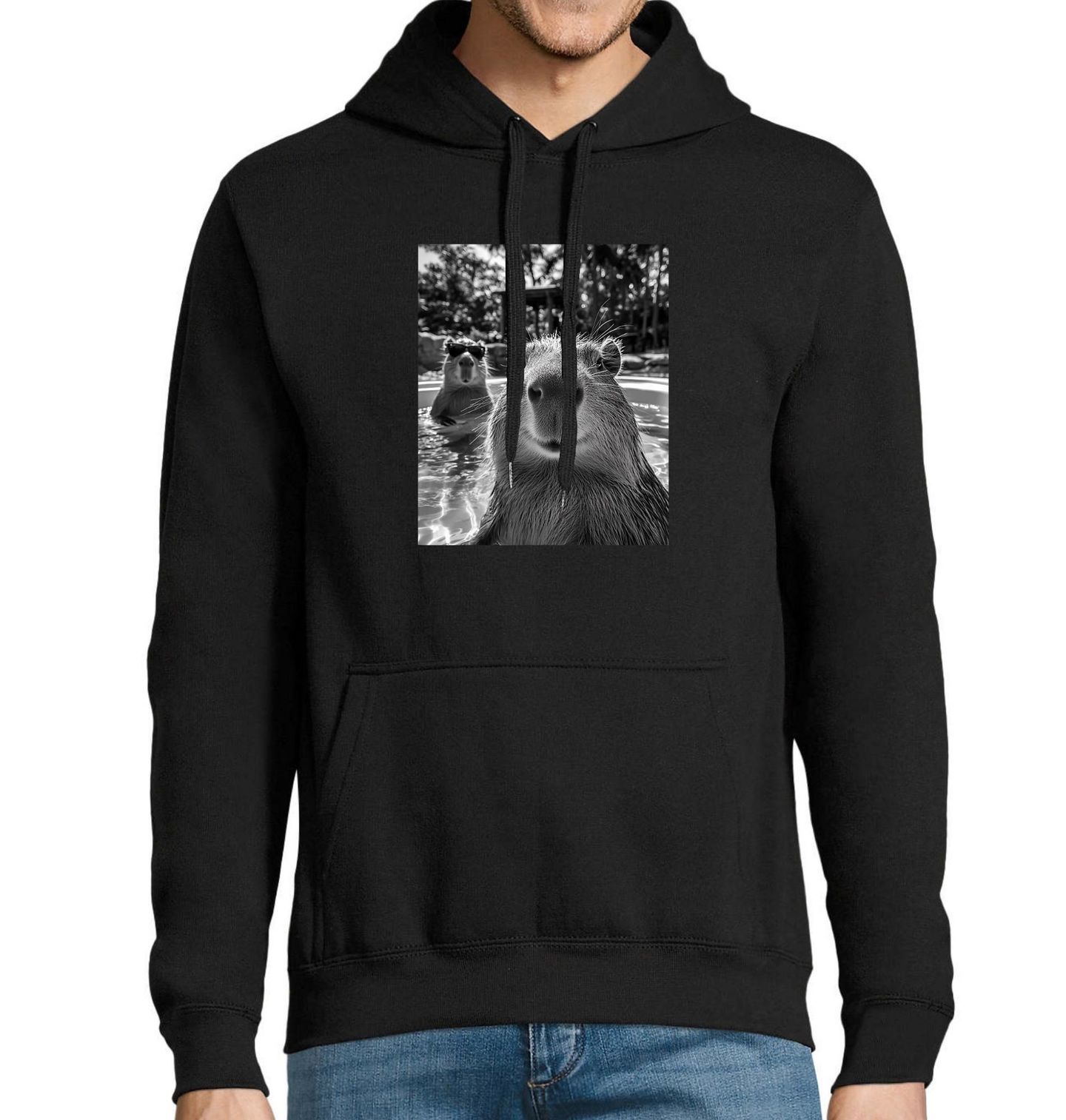 Pánská mikina Kapybara v bazénu. Když kapybara ví, jak si užít léto naplno! Slunce, pohoda, voda a tahle naprosto cool kapybara – ideální kombinace pro letní výlety, chill u vody nebo jako vtipný dárek. Léto volá a hlodavec už čeká v bazénu – přidej se!