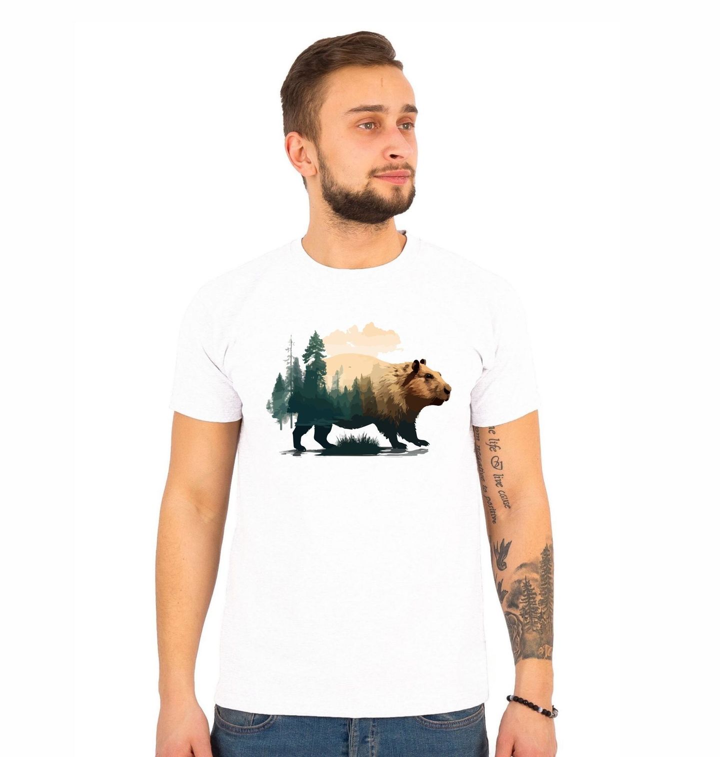 Pánské tričko Kapybara ve Stínu Stromů. Objevte jedinečný motiv, kde kapybara, největší hlodavec světa, splývá s atmosférou hlubokého lesa. Tento design propojuje klidné zvíře – kapybara – s přírodou a lesní krajinou, což z něj dělá dokonalou volbu pro milovníky zvířat, přírody a originálního umění.