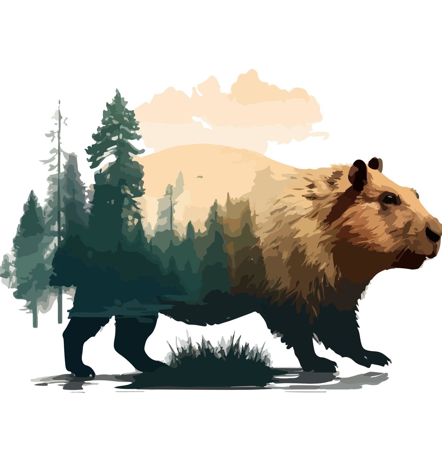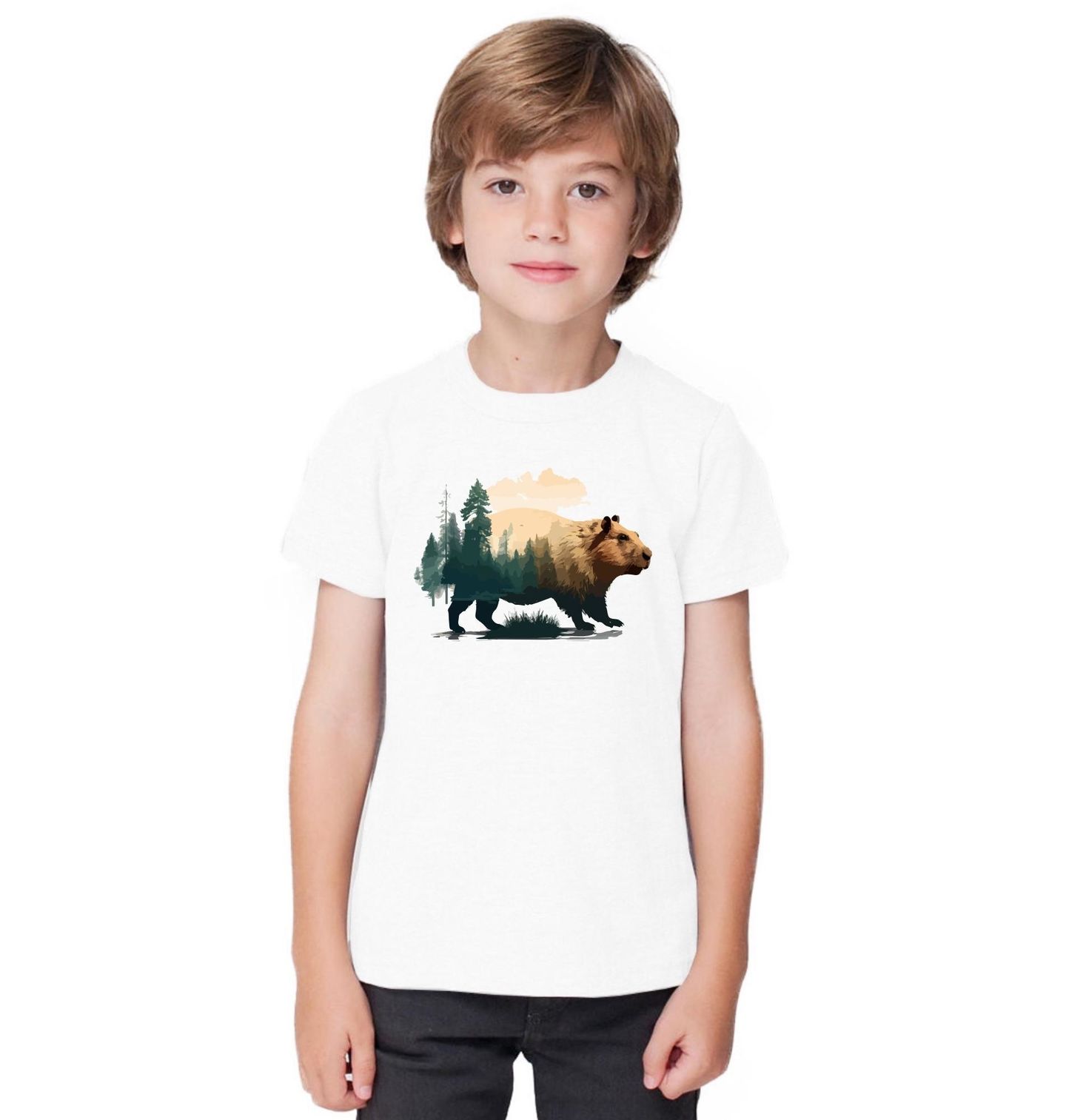 Dětské tričko Kapybara ve Stínu Stromů. Objevte jedinečný motiv, kde kapybara, největší hlodavec světa, splývá s atmosférou hlubokého lesa. Tento design propojuje klidné zvíře – kapybara – s přírodou a lesní krajinou, což z něj dělá dokonalou volbu pro milovníky zvířat, přírody a originálního umění.
