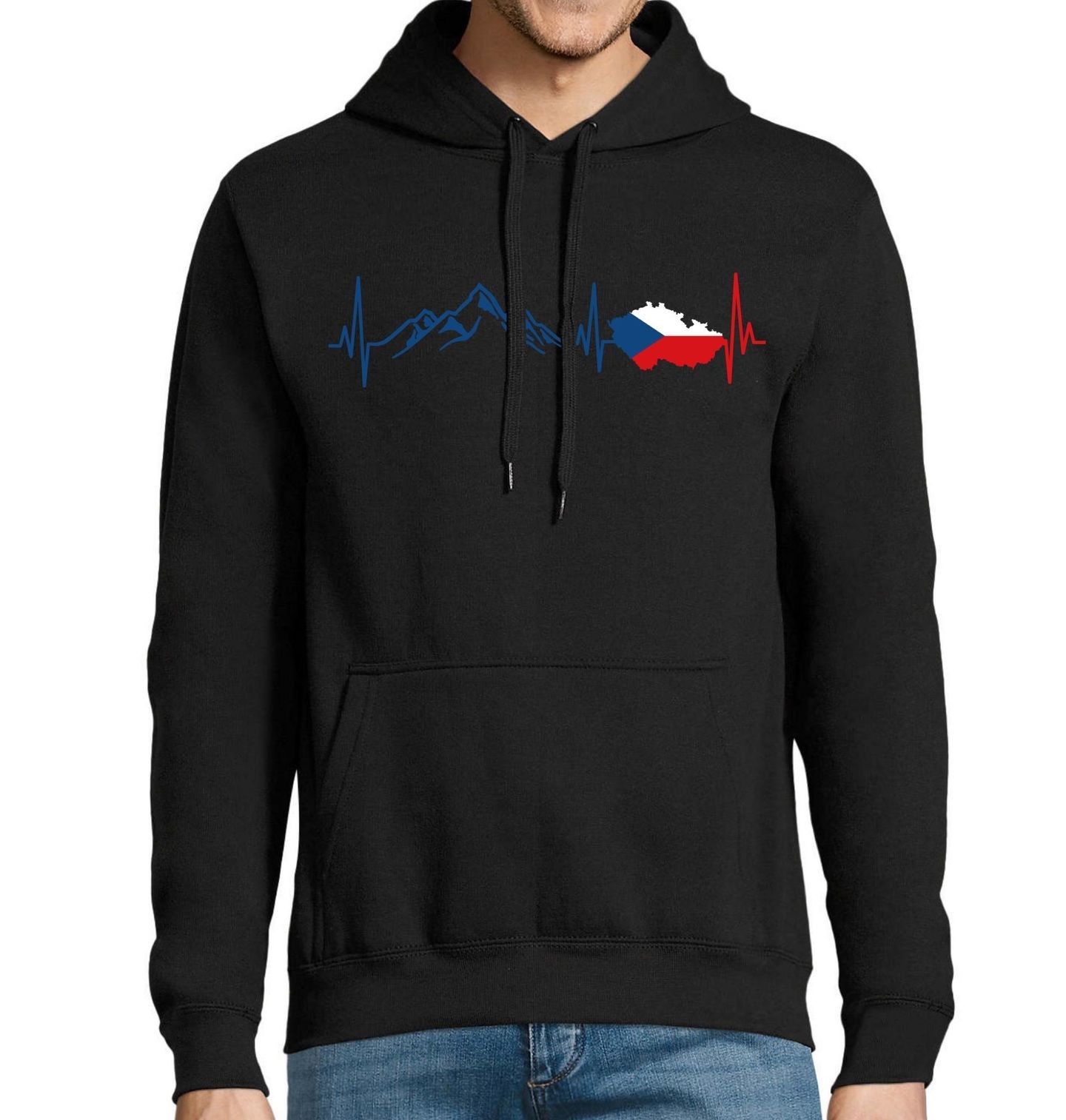 Pánská mikina Kardiogram a České Hory. Design vyniká minimalistickým stylem a silnou myšlenkou – kardiogram jako tep života, hory jako symbol svobody a Česko jako místo, které máme v srdci. Tento motiv osloví každého, kdo miluje hory, přírodu a jedinečnou energii české krajiny. Ideální volba pro všechny, kdo chtějí vyjádřit svůj vztah k horám i k Česku originálním a nadčasovým způsobem.