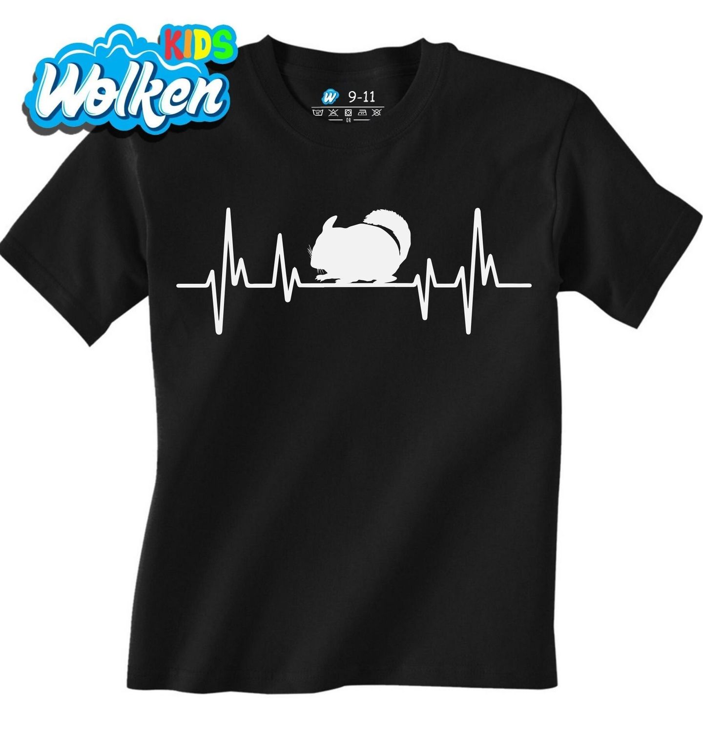 Dětské tričko Kardiogram a Činčila. Silueta tohoto roztomilého hlodavce zasazená do linky kardiogramu symbolizuje lásku k drobným zvířecím kamarádům. Ideální motiv pro milovníky exotických mazlíčků, kteří vědí, že činčila není jen hlodavec, ale opravdová srdcovka.