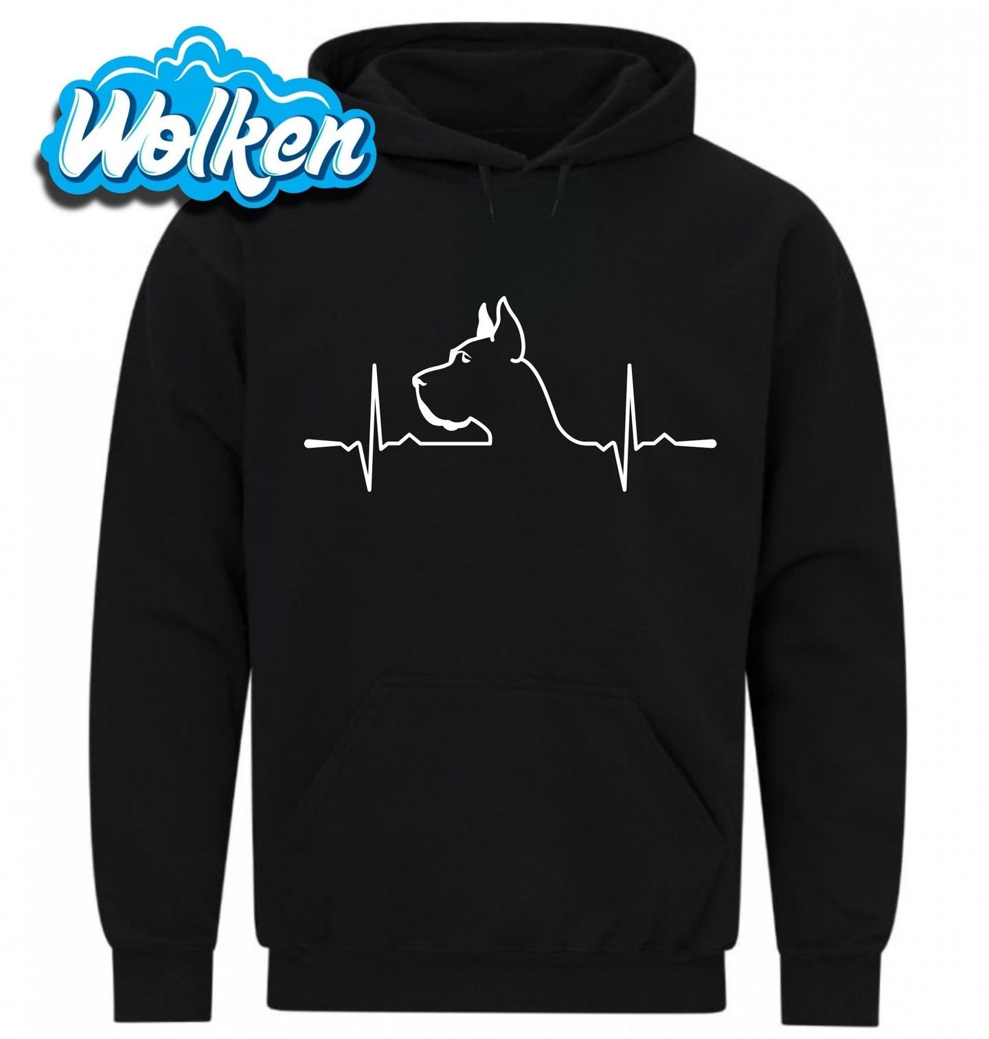 Pánská mikina Kardiogram a Německá doga. Německá doga je německé národní psí plemeno. Dříve se řadila mezi pracovní plemena, dnes se chová spíše jako společník. Pes jako je německá doga není jen domácí mazlíček – je to parťák, ochránce a srdce celé rodiny. Pokud patříš mezi hrdé pejskaře, tenhle motiv je jako stvořený pro tebe.