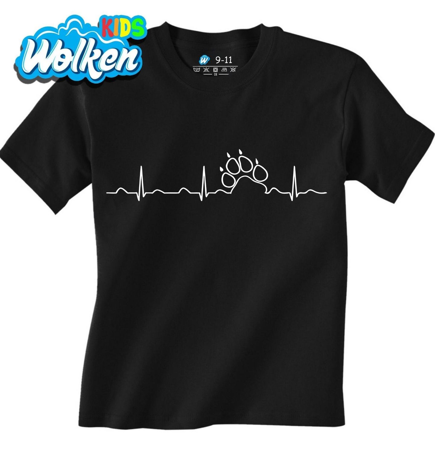 Dětské tričko Kardiogram a Otisk Tlapky. Kardiogram s tlapkou je srdcovou záležitostí pro každého skutečného pejskaře. Spojení tepové křivky a psí tlapky symbolizuje to, co milovníci psů dobře znají – že pes není jen mazlíček, ale člen rodiny, který zanechává otisk na srdci.