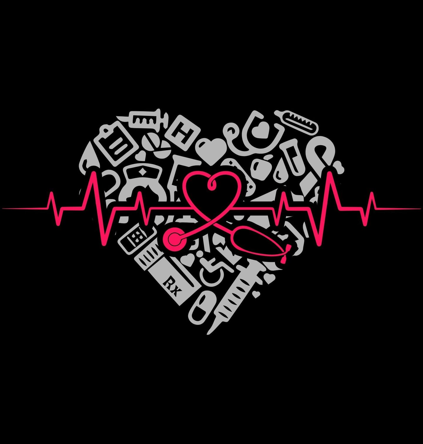 Dětské tričko Kardiogram a Srdce Zdravotníka. Originální motiv, kde srdce tvoří symboliku péče, empatie a oddanosti profesi. Design propojuje výrazný kardiogram s elegantně zakomponovaným stetoskopem a ikonami z oblasti zdravotnictví, které společně vytvářejí silný vizuální příběh. Tento motiv je ideální pro lékaře, sestry i všechny zdravotníky, kteří chtějí hrdě ukázat svou profesi a vztah k pomoci druhým.
