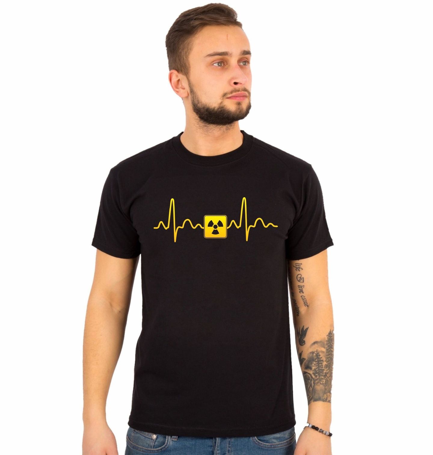 Pánské tričko Kardiogram a Symbol Radioaktivity. Unikátní motiv Kardiogram s výrazným symbolem radioaktivity je jako stvořený pro všechny milovníky fyziky, jaderné energie nebo fanoušky neotřelého designu. Tento originální design spojuje klasickou srdeční křivku s varovným symbolem radiace a přináší výbušnou dávku stylu i humoru.