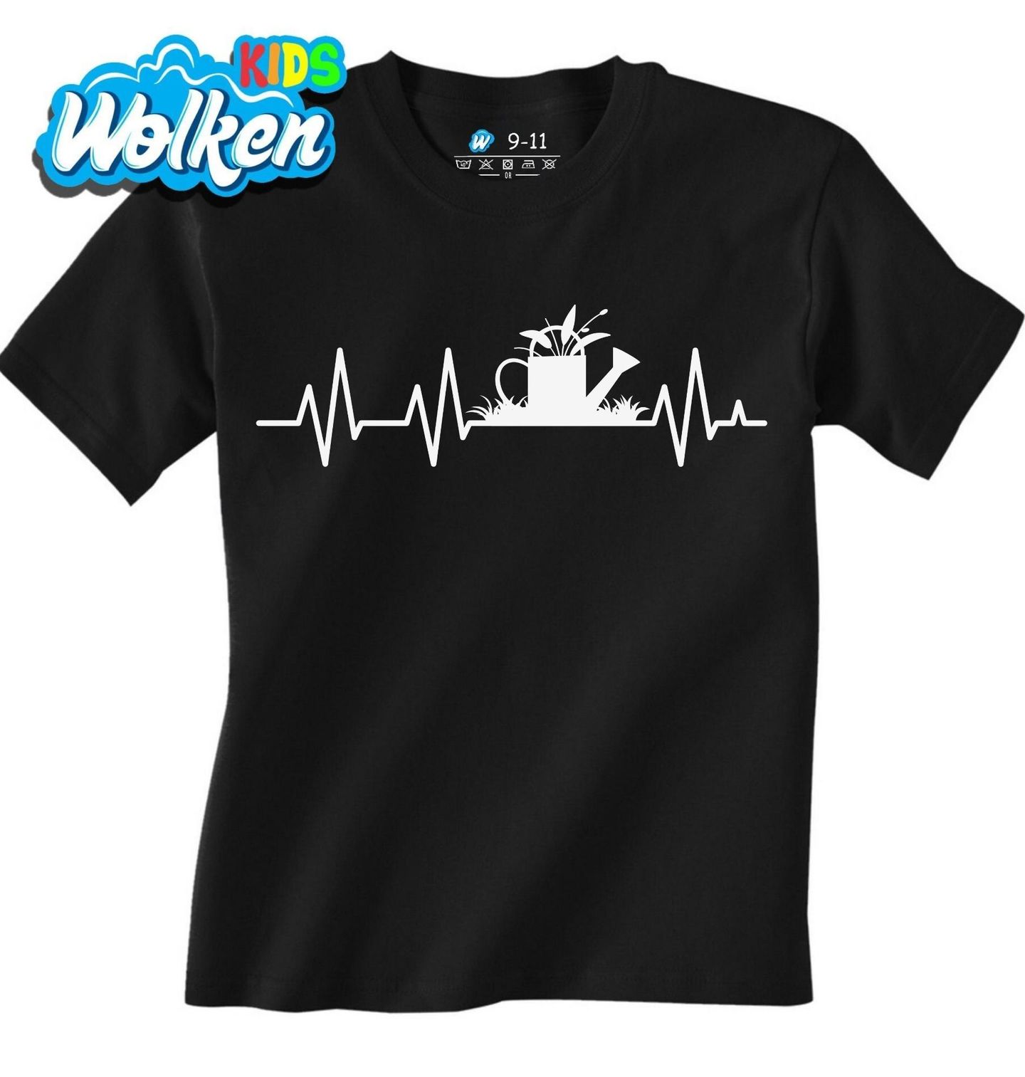 Dětské tričko Kardiogram a Zahradní Konev. Motiv kardiogram s motivem zahrady a siluetou zalévací konvice vyjadřuje srdce každého vášnivého zahrádkáře. Zahrada je místem klidu, života a každodenní péče – a právě tento design zachycuje, jak hluboko může zakořenit láska k přírodě.