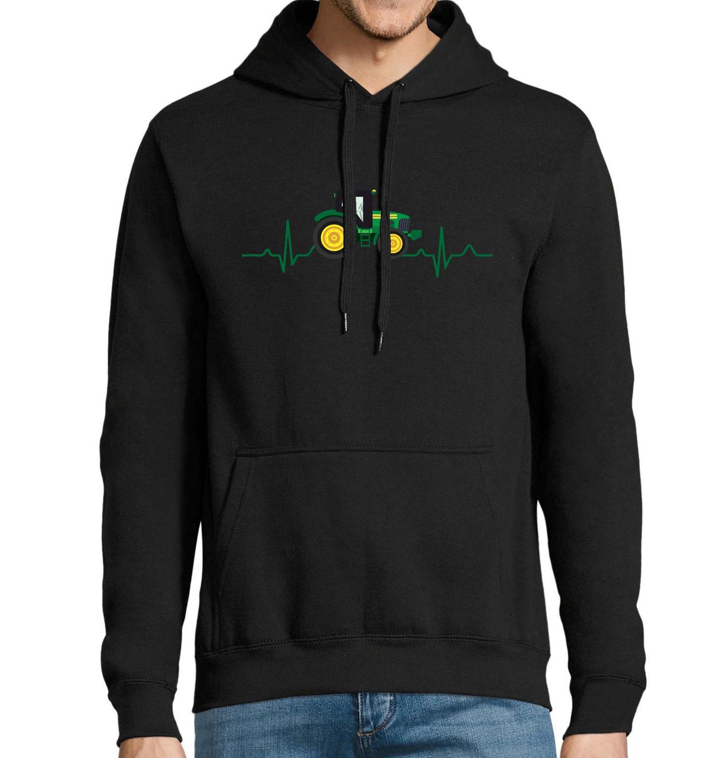 Pánská mikina Kardiogram a Zelený Traktor. Když tvůj život běží na diesel a pole je tvůj domov, tohle tričko je jasná volba. Stylový kardiogram s dominantním traktorem znázorňuje, co ti skutečně proudí v žilách. Ať už jsi farmář, zemědělec nebo jen milovník traktorů, tenhle motiv mluví za tebe – traktor, farma, příroda a hrdost.