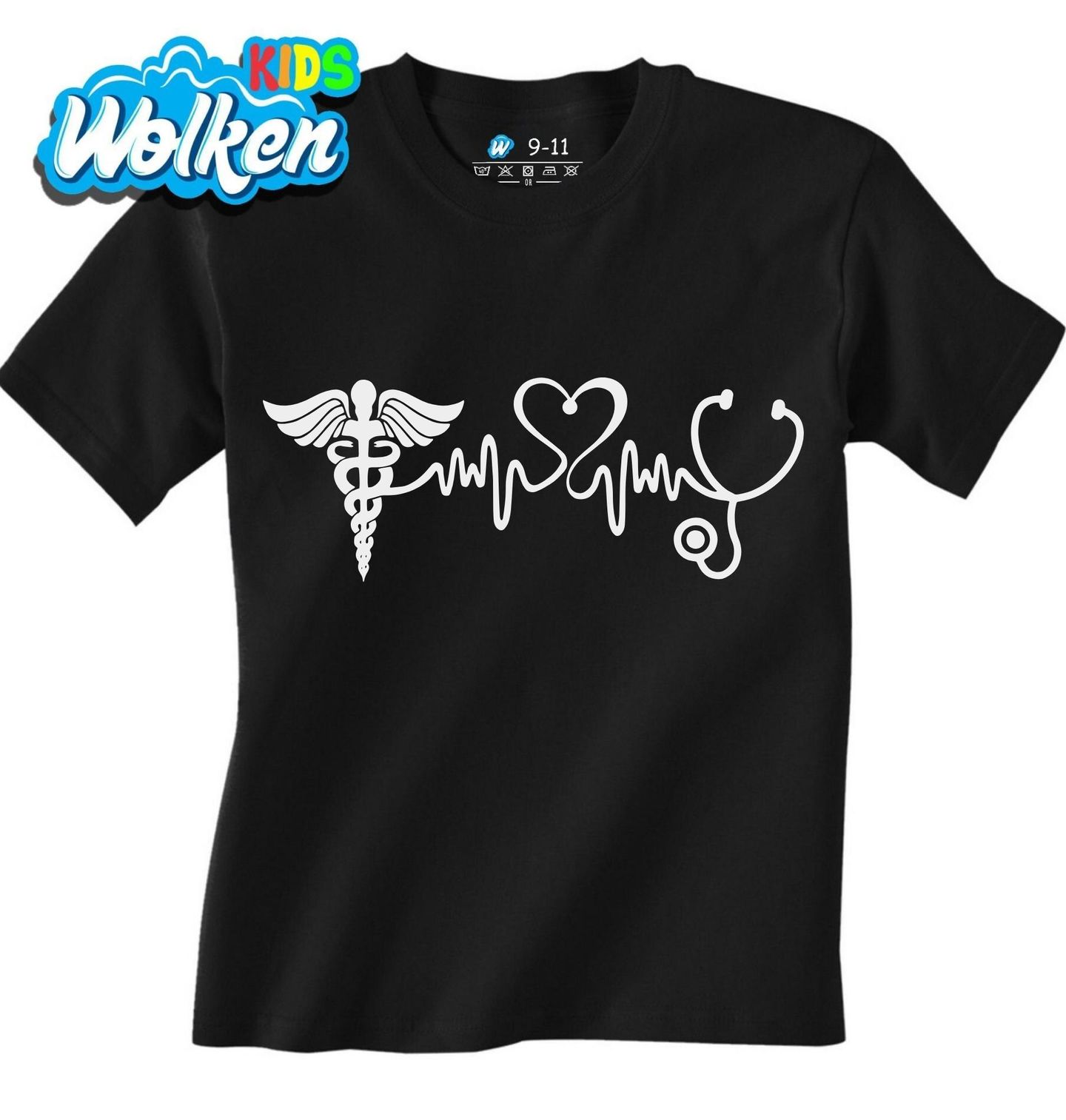 Dětské tričko Kardiogram Zdravotnictví. Objevte jedinečný motiv, který spojuje tři silné prvky zdravotnictví – symbol Caduceus a stetoskop, doplněné o srdce a pulzní linku. Tento design je ideální pro doktory, studenty medicíny, zdravotní sestry i lékaře, kteří chtějí vyjádřit svou vášeň k zdravotnictví a péči o druhé.