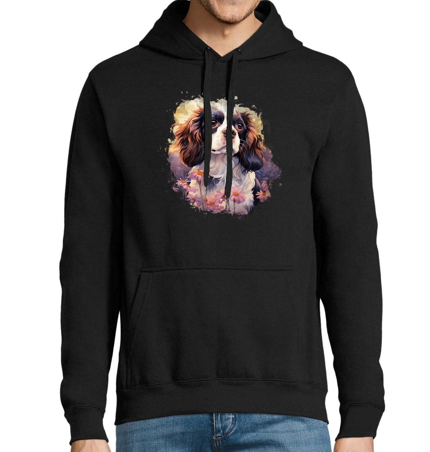 Pánská mikina Kavalír mezi Květinami. Kavalír King Charles španěl obklopený jemnými květinami zaujme každého milovníka psů i přírody. Tento půvabný motiv spojuje krásu a noblesu, kterou tento pes vyzařuje. Ideální volba pro každého pejskaře, který chce vyjádřit svou lásku ke svému čtyřnohému parťákovi stylově a s citem pro detail.