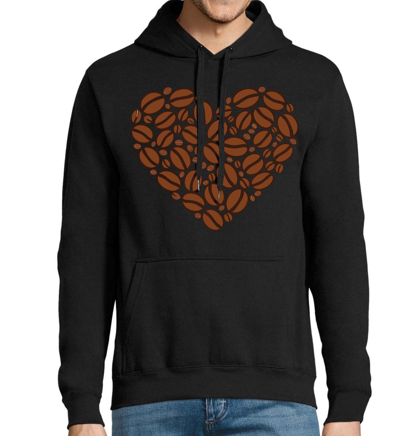 Pánská mikina Kávové Srdce. Originální motiv vytvořený z kávových zrn do tvaru srdcee potěší každého, pro koho je káva každodenním rituálem i vášní. Minimalistický design spojuje eleganci a lásku k aromatickému nápoji, díky čemuž je ideální jako dárek nebo stylový doplněk pro všechny, kdo pro koho je káva ten správný začátek dne.